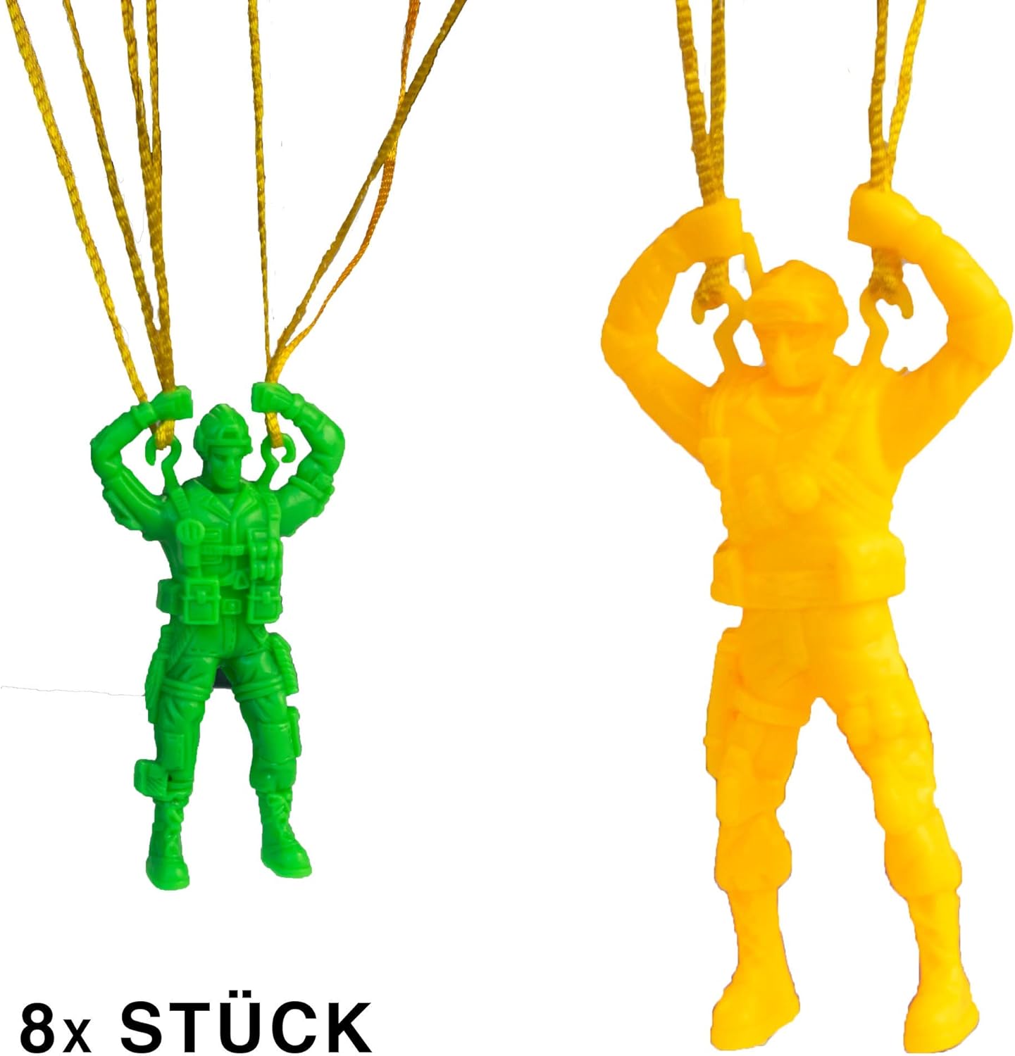 Fliegende Abenteuer für kleine Entdecker! Dieses 7er Set mit bunten Fallschirm-Figuren bringt Action in jeden Garten. In 6 leuchtenden Farben: Rot, Orange, Blau, Grün, Gelb und Tarnung. Die Schirme aus robustem Polyester öffnen sich zuverlässig. Die Figuren aus kindersicherem Kunststoff - geruchsfrei und langlebig. Einfach hochwerfen und den sanften Sinkflug beobachten. Fördert Koordination und Motorik. Perfekt für Kindergeburtstage, Familienausflüge oder Pausenspiele. Auch Erwachsene haben ihren Spaß dabei! Ideal für draußen - ob Garten, Park oder Spielplatz. Macht jeden Tag zum Abenteuer! Einfaches Spielprinzip - sofort loslegen und Spaß haben.