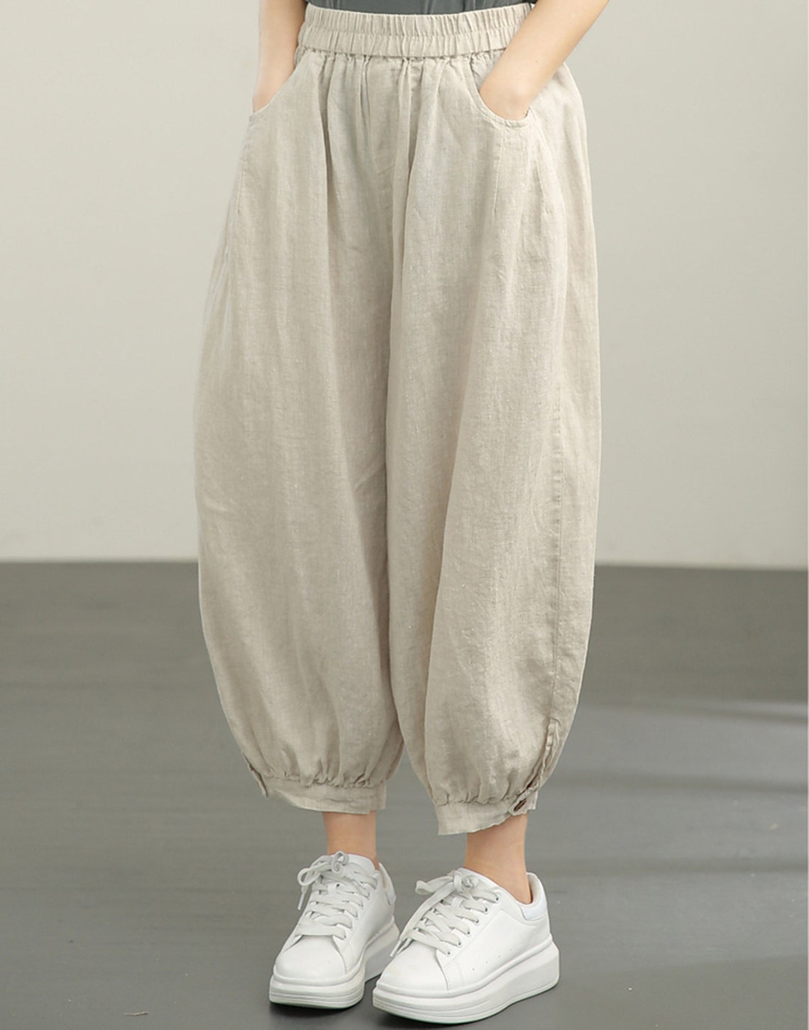 Leinenhose Damen 7/8 - Weite Baumwoll Hose Mit Hoher Taille
