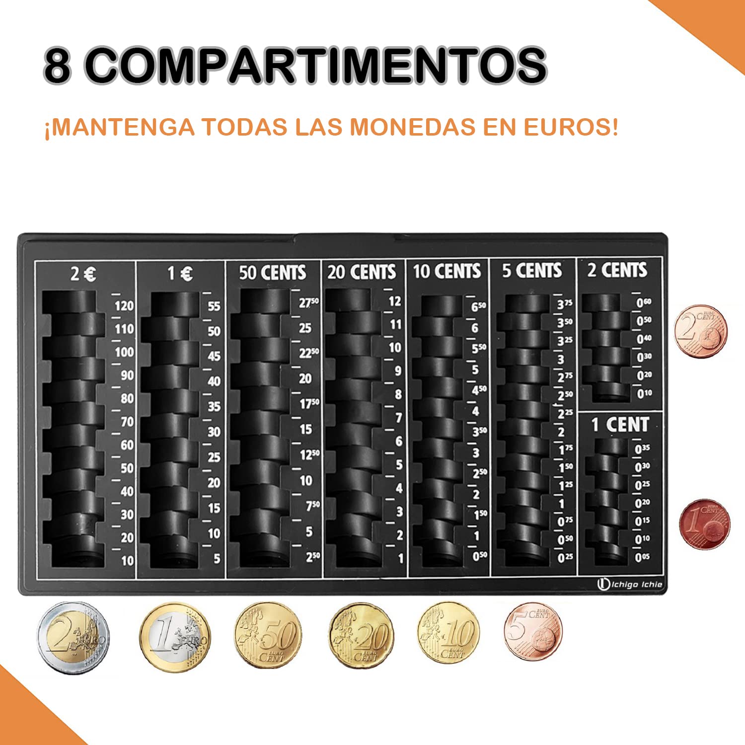 Ichigo Ichie Münztablett - 8-fach Münzfächer Für Euro & Cent, 33x18,5 Cm
