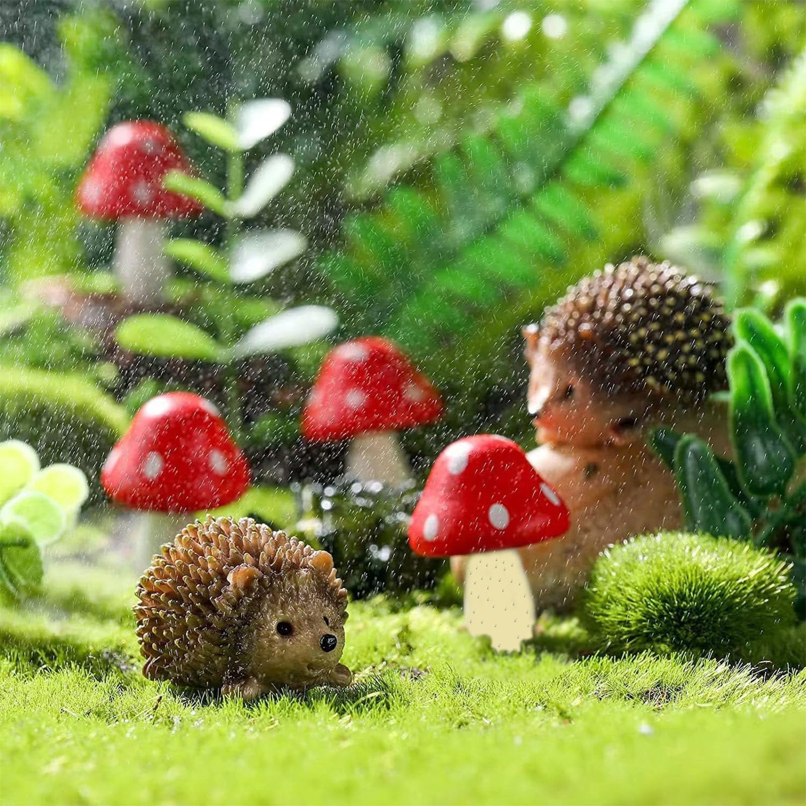 YEWCEP Feengarten Set Mit Igeln & Pilzen - 8-teilige Resin Deko Für Garten & Zimmer