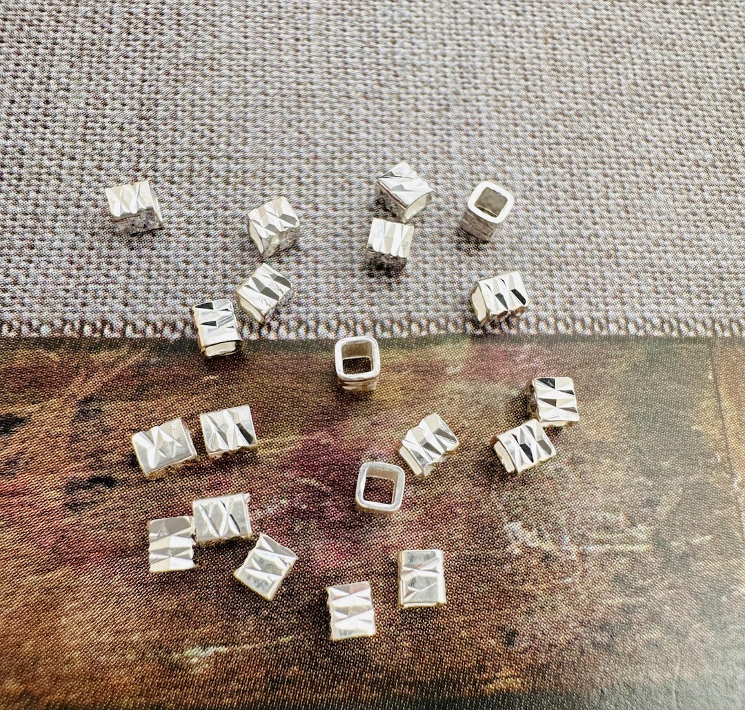 80 Stück Würfel Abstandshalterperlen - 925 Sterling Silber Plattiert Für Schmuck