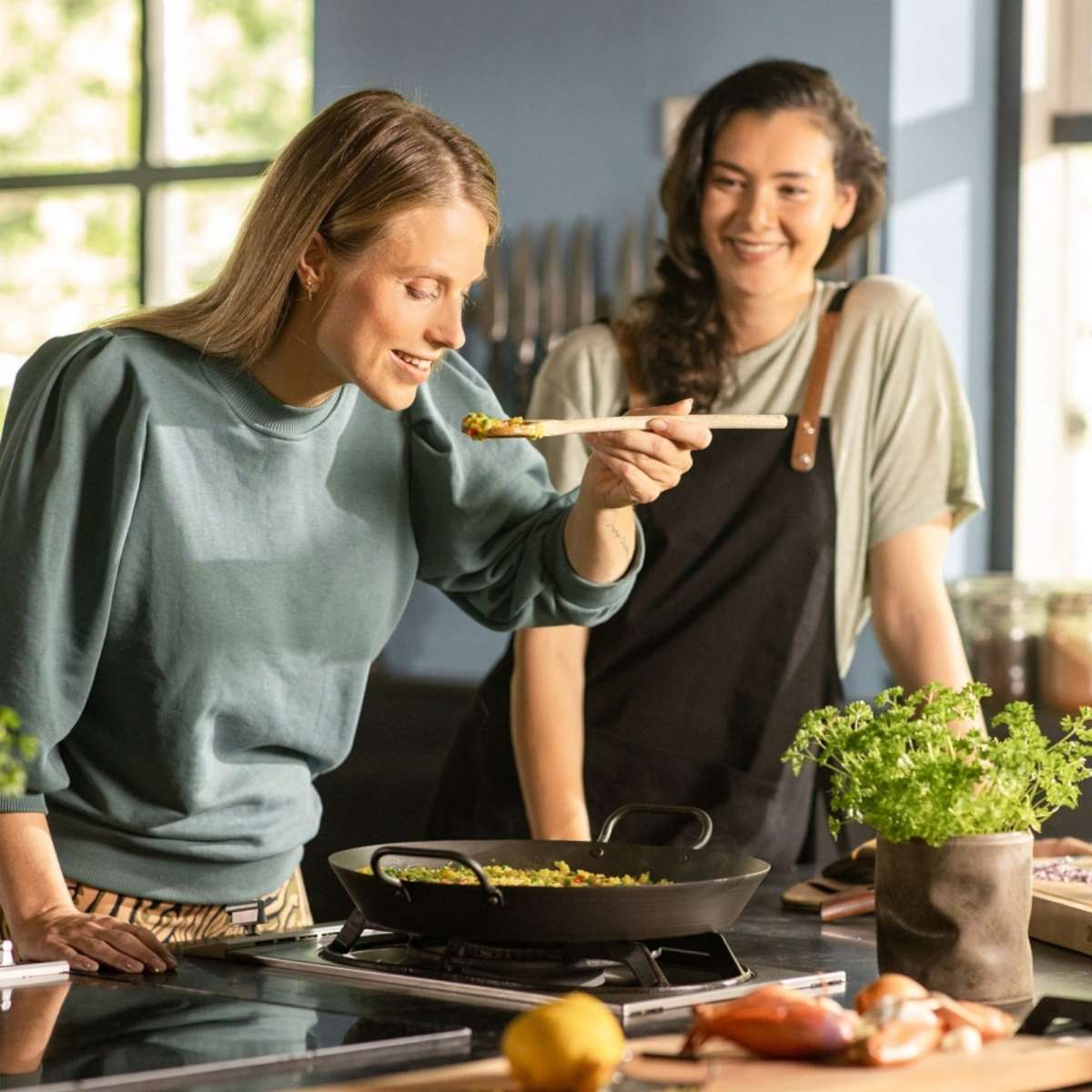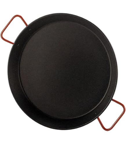 Echte Paella-Power für große Runden! Diese Profi-Pfanne mit stolzen 80cm Durchmesser bringt spanisches Flair auf deine Festtafel. Extra verstärkter Stahl der sich nicht verzieht - made for action! Perfekt für Feuer, Gas oder Grill. Mit 4 robusten Griffen ist das Handling auch voll beladen sicher. Für 6-45 Personen - ideal für Familienfeiern, Feste oder Restaurant-Einsatz. Stolze 14,58 kg Gewicht zeigen die massive Qualität. Polierte Oberfläche, schwarze Griffe mit 4 Nieten - das sieht nicht nur gut aus, das hält! Deine Gäste werden begeistert sein von der authentischen Paella aus der original Profi-Pfanne!