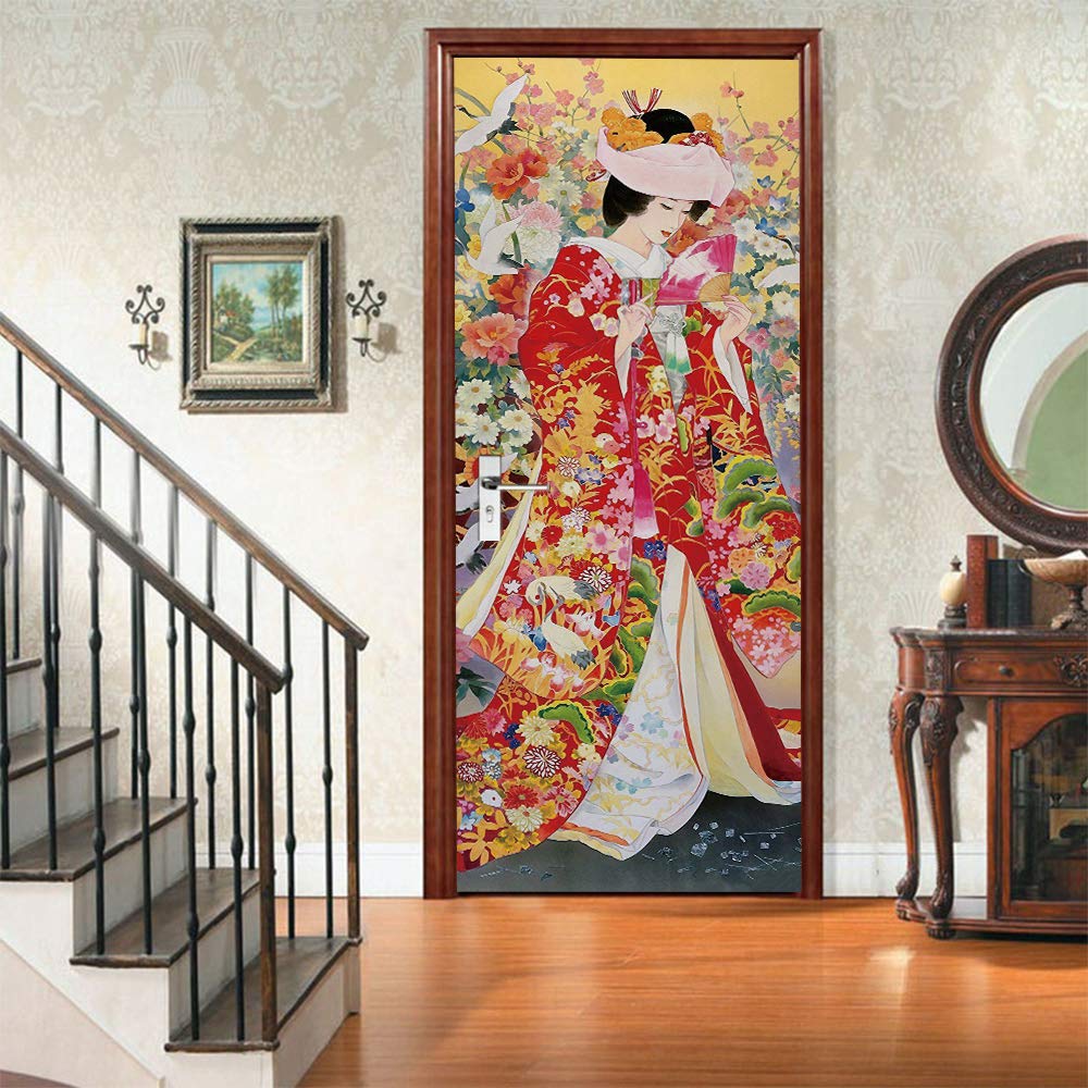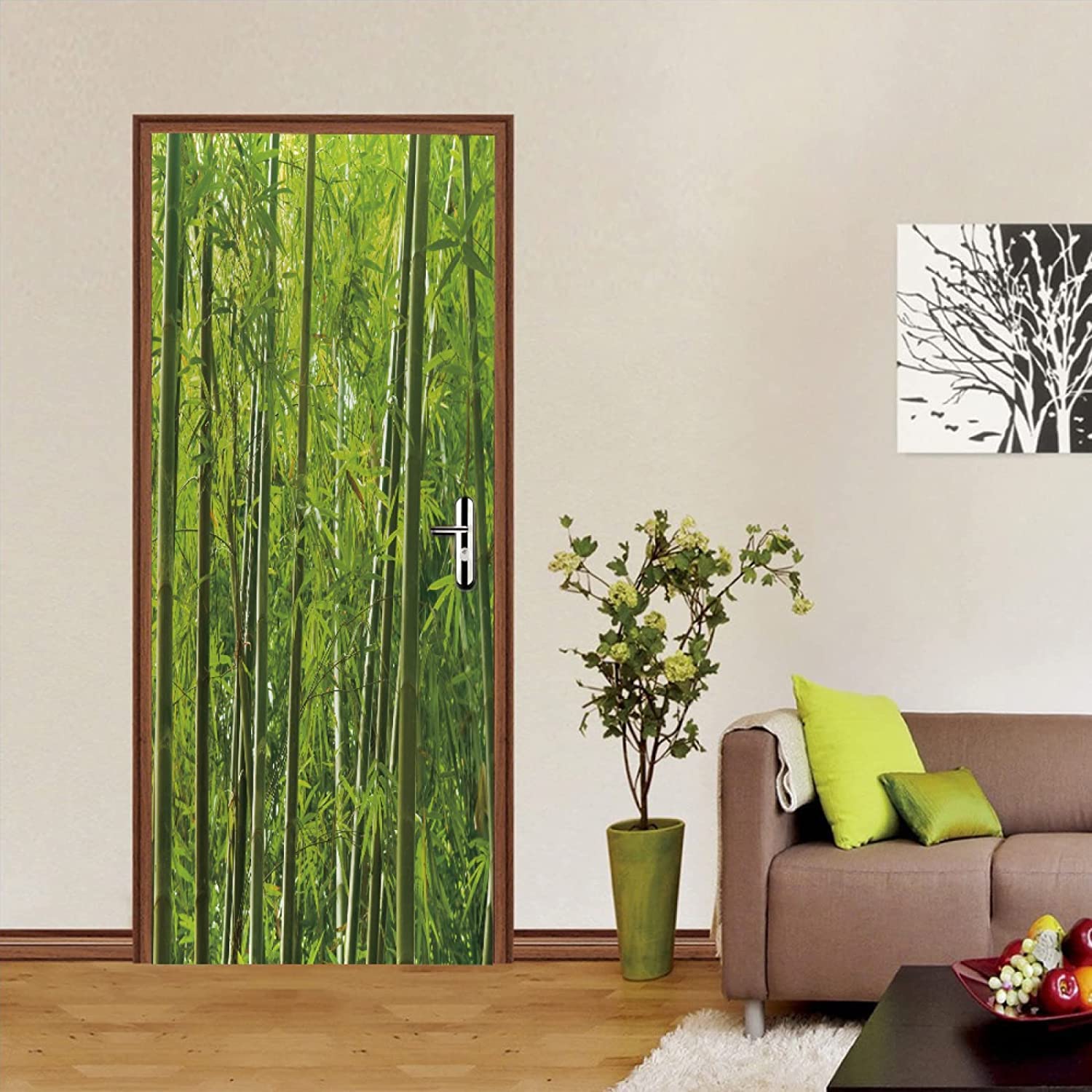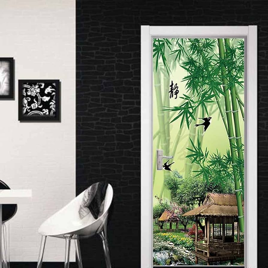 Chinesische Bambuswald Türtapete 80x210cm - Wasserdicht Selbstklebend PVC Vinyl 3D Design
