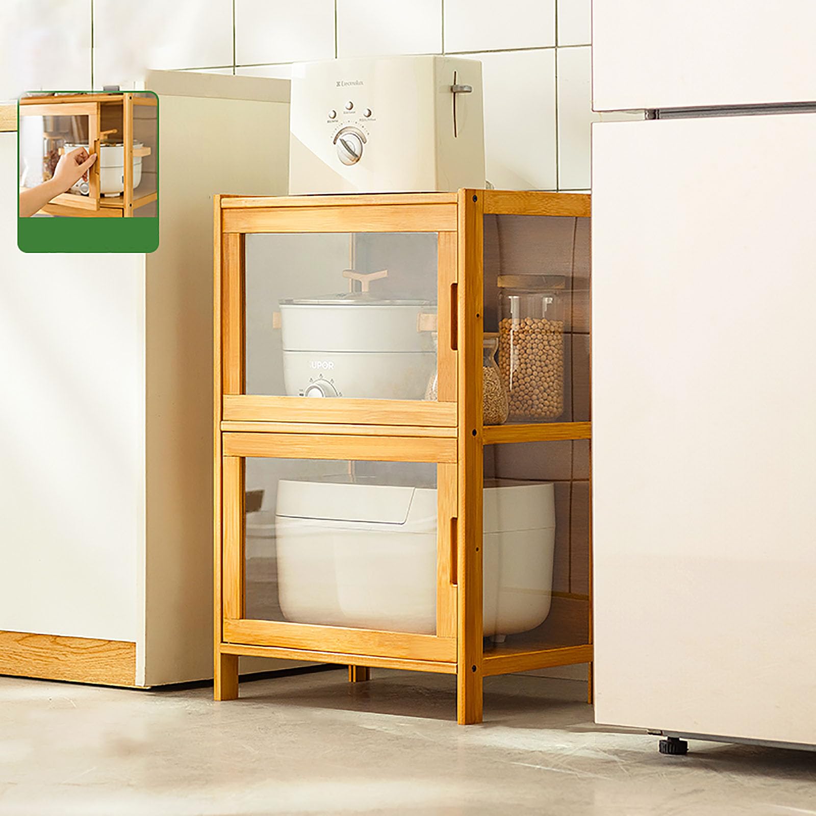 Vitrine Mit Acrylglas & Bambus | 80x40x32cm Kuriositätenschrank - Schwarz