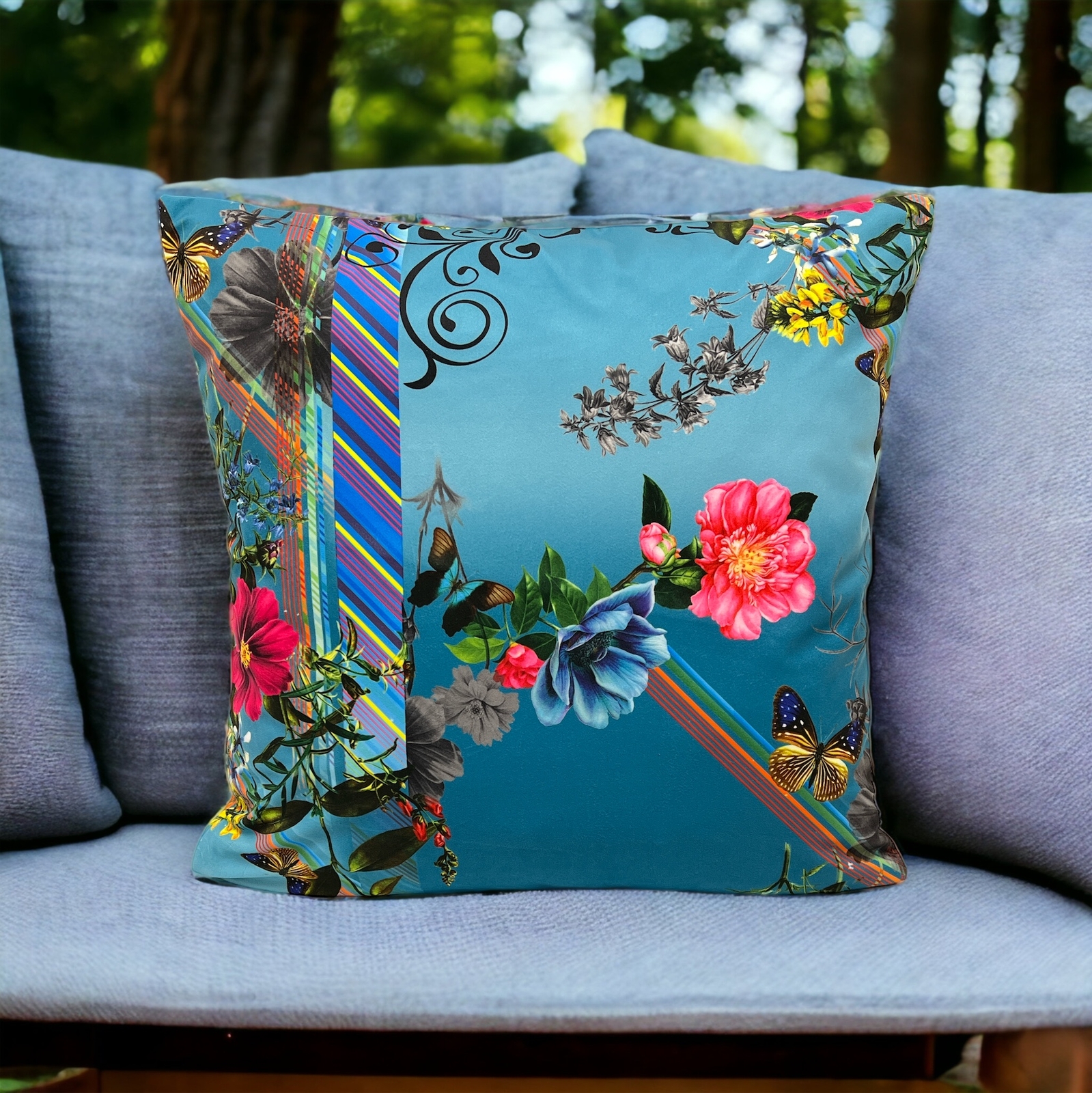 Kissenbezug 80x80 Mandala Design - Grün Blau Outdoor Polyester Sofakissen