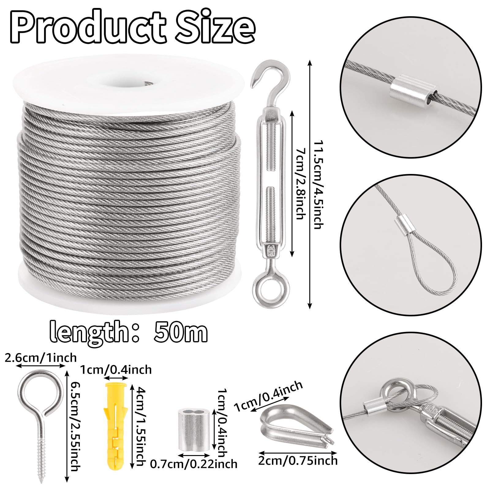 CIANBIFN Drahtseil Set 50M 2mm - 81-teilig Edelstahl Mit Zubehör