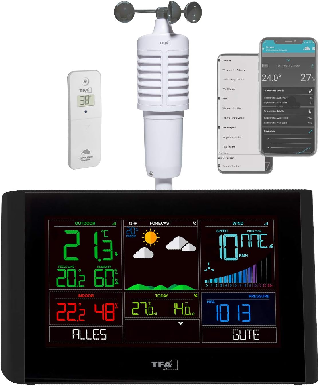 TFA Dostmann WLAN Wetterstation 35.8106 - 8-in-1 Profi Wettervorhersage Mit Online-Portal