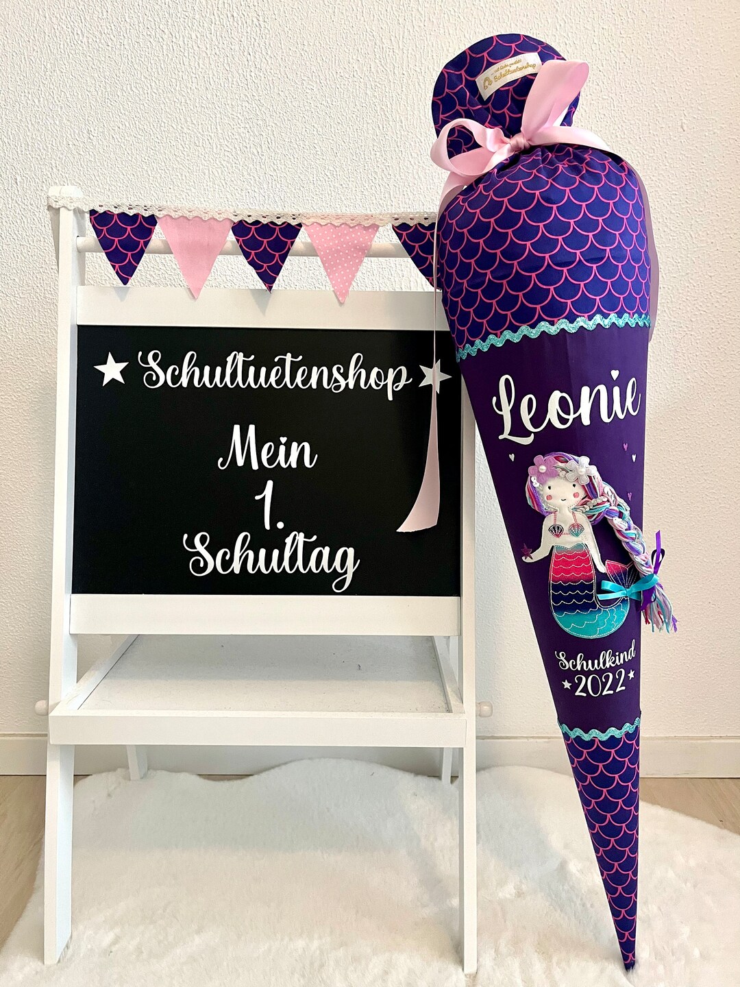 Die perfekte Schultüte für kleine Meerjungfrauen-Fans! 85cm groß mit süßem Meerjungfrau-Motiv und Fischen. Mit fester Holzspitze - die hält was aus! Tüllabschluss sieht total edel aus. Eckige Form - bietet extra viel Platz für Süßigkeiten und Geschenke. Optional mit persönlichem Wunschnamen - mach sie einzigartig! Auch mit extra Schleife mit Namen erhältlich. Perfekt für den ersten Schultag - ein unvergesslicher Moment! Stabile Verarbeitung - geht nicht so schnell kapopt. Von Roth - Qualität die man kennt. Wird deine Kleine bestimmt lieben! Mach den großen Tag noch besonderer mit dieser wunderschönen Schultüte!