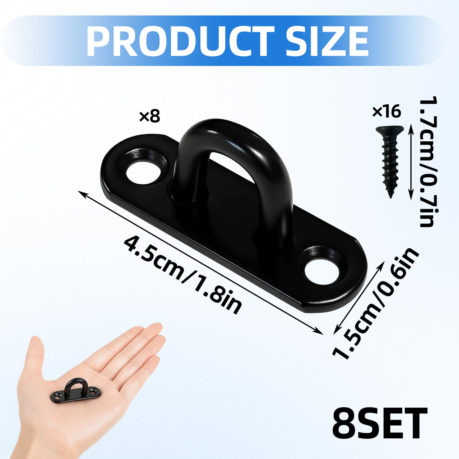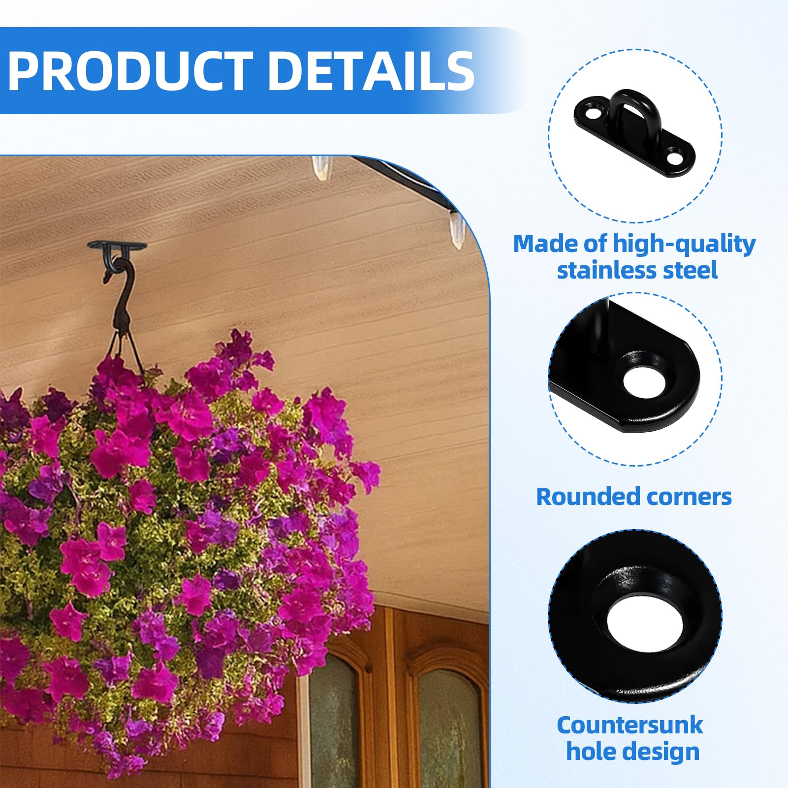 Menibeuty 8x Edelstahl Deckenhaken - Schwerlast Ösenplatte M5 Schwarz
