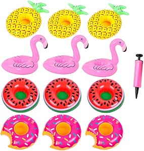 Poolparty? Dann brauchst du diese super coolen Flamingo-Getränkehalter! 8 Stück im Pack - genug für die ganze Familie oder Freunde. Einfach aufblasen (aber nur zu 90-95%, dann stehen sie am besten) und schon halten sie deine Getränke im Pool oder am Strand sicher über Wasser. Aus weichem PVC-Material das nicht so leicht reißt. Jeder Halter trägt bis zu 430g - also normale Gläser und Dosen sind kein Problem. Mit den funkelnden Pailletten sehen sie in der Sonne einfach hammer aus. Nicht nur praktisch, sondern auch total dekorativ. Sommerfeeling pur!