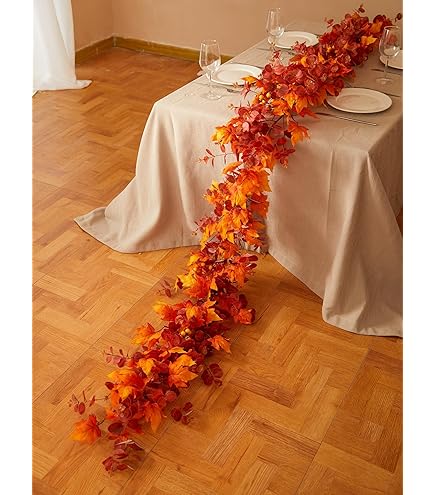 Wow, diese Girlande bringt Herbst-Feeling in dein Zuhause! Mit 9 Fuß (ca. 2,74m) Länge hast du genug Material für Türdekoration, Kamin oder Tisch. Die künstlichen Ahornblätter, Eukalyptus und Beeren sehen täuschend echt aus - aber ohne dass du sie gießen musst! Einfach in Form bringen und dekorieren. Perfekt für Halloween, Thanksgiving oder Weihnachten. Aus hochwertigem Seidenmaterial, das nicht verblasst. Wenn sie nach dem Auspacken etwas zerknittert ist, einfach mit dem Fön in Form bringen. So einfach kann schöne Deko sein!