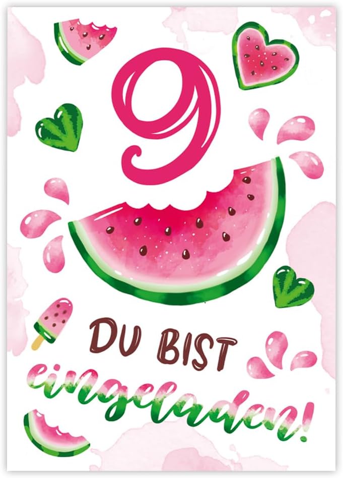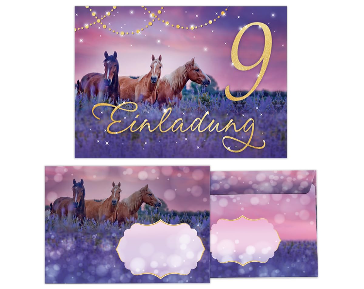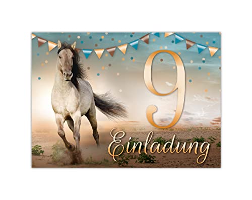 Junapack 12 Einladungskarten Zum 9. Geburtstag - Pferde Motiv Für Mädchen Geburtstagsparty