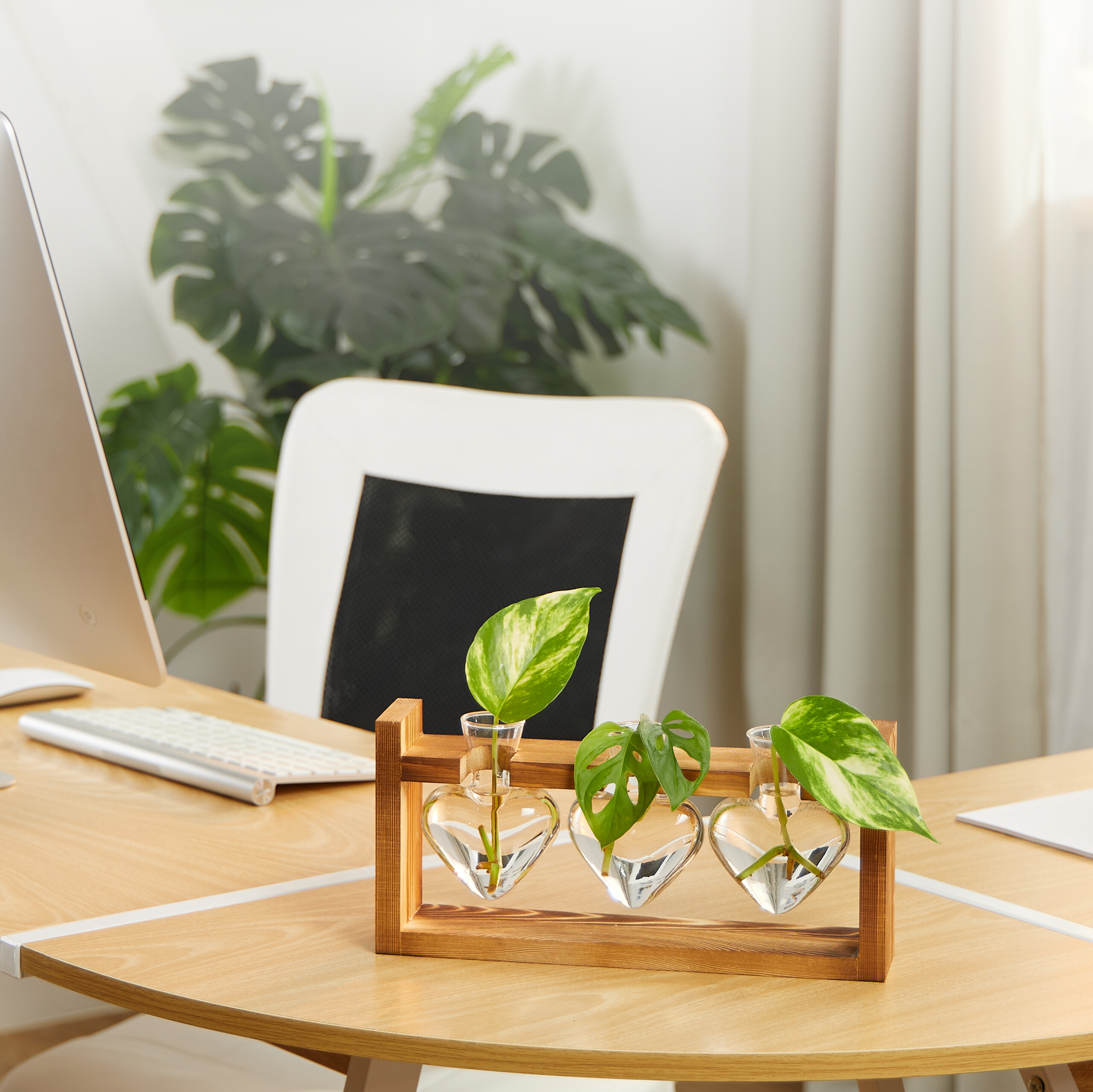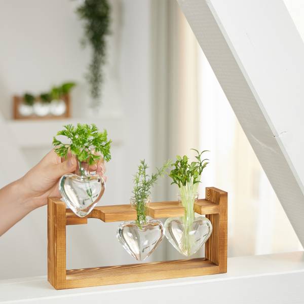 Total stylische Pflanzen-Vermehrungsstation im Labor-Look! Der Holzständer hat zwei Etagen mit insgesamt 9 Reagenzgläsern - perfekt um Stecklinge zu ziehen oder deine Pflanzen in Hydrokultur zu halten. Du kannst super das Wurzelwachstum beobachten, weil die Glasröhren komplett transparent sind. Der stabile Holzständer sieht nicht nur cool aus, sondern steht auch bombenfest. Mitgeliefert werden 9 Glasröhren (eins ist Ersatz), eine Reinigungsbürste und Nägel zur Befestigung. Perfekt fürs Wohnzimmer, Büro oder den Wintergarten - das Teil ist ein echter Hingucker! Ob für Ableger, Stecklinge oder einfach nur als dekorative Vase für Blumen - hier hast du alles unter Kontrolle. Die erhöhte Konstruktion gibt dir freie Sicht auf alle Pflanzen und macht das Wasserwechseln super einfach. Ein Must-Have für alle Pflanzenfans, die ihren grünen Daumen zeigen wollen! Einfach die Gläser mit Wasser füllen, Stecklinge rein und beim Wachsen zusehen!