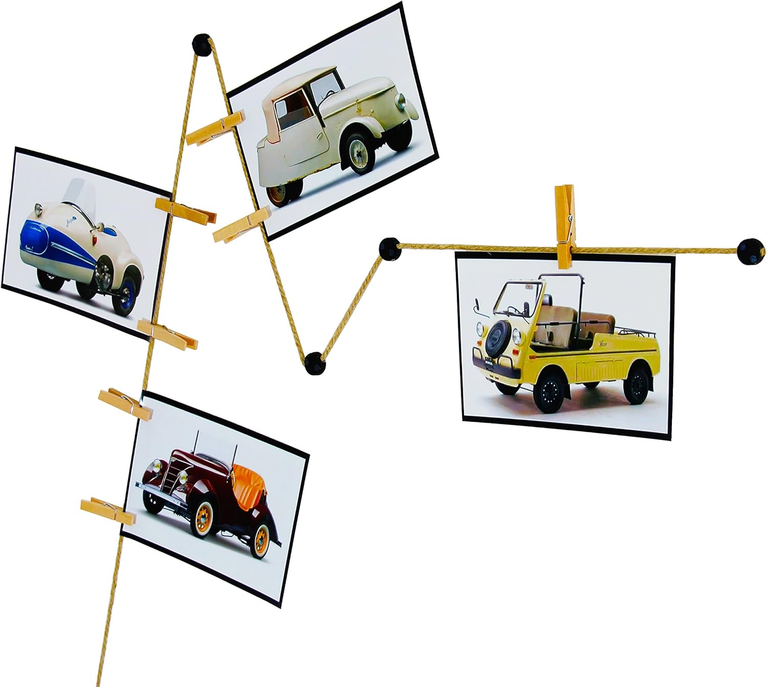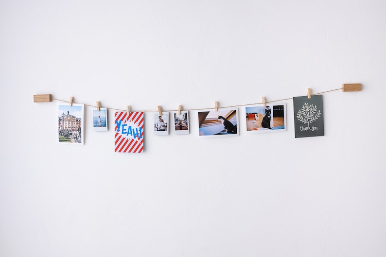 Mit 9 stabilen Holzklammern (3,5cm) kannst du deine Lieblingsfotos, Postkarten oder kleine Kunstwerke befestigen. Sieht total gemütlich und persönlich aus!