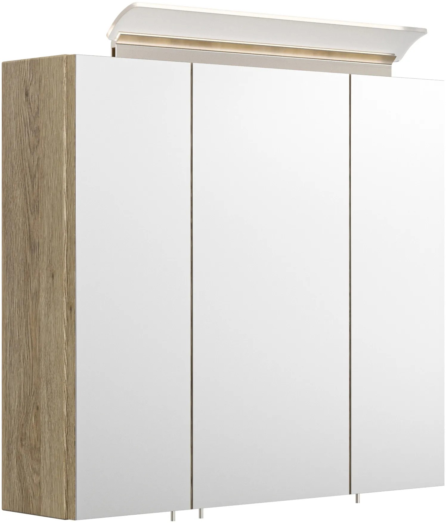 Mit 3 Türen und 6 Glas-Einlegeböden - genug Platz für alle Kosmetikartikel. Integrierte LED-Beleuchtung für perfektes Licht.