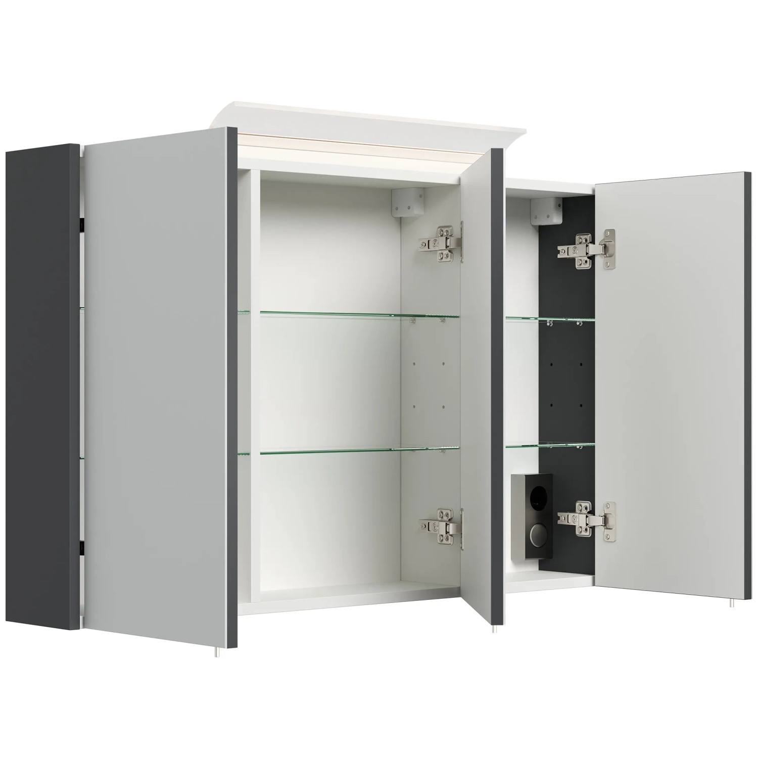 Posseik Spiegelschrank 90cm Anthrazit - Mit LED Beleuchtung