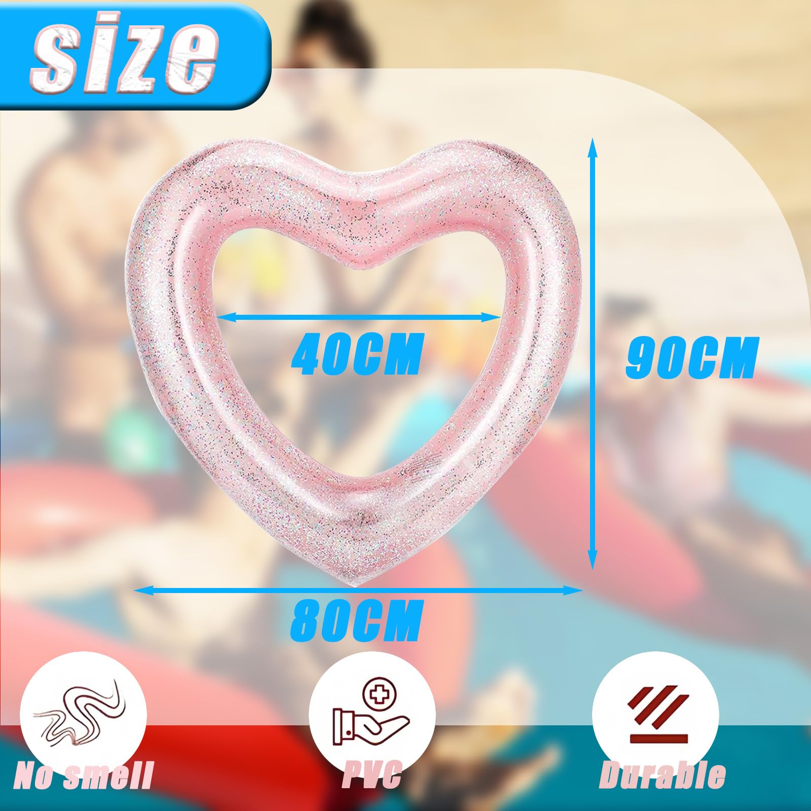 Mach deinen Pool-Besuch zum absoluten Highlight mit diesem knalligen Herz-Schwimmring! Mit 90cm Durchmesser ist er perfekt für Teens und Erwachsene. Der Glitzer-Effekt und die knalligen Farben sorgen für ultimativen Sommer-Spaß.