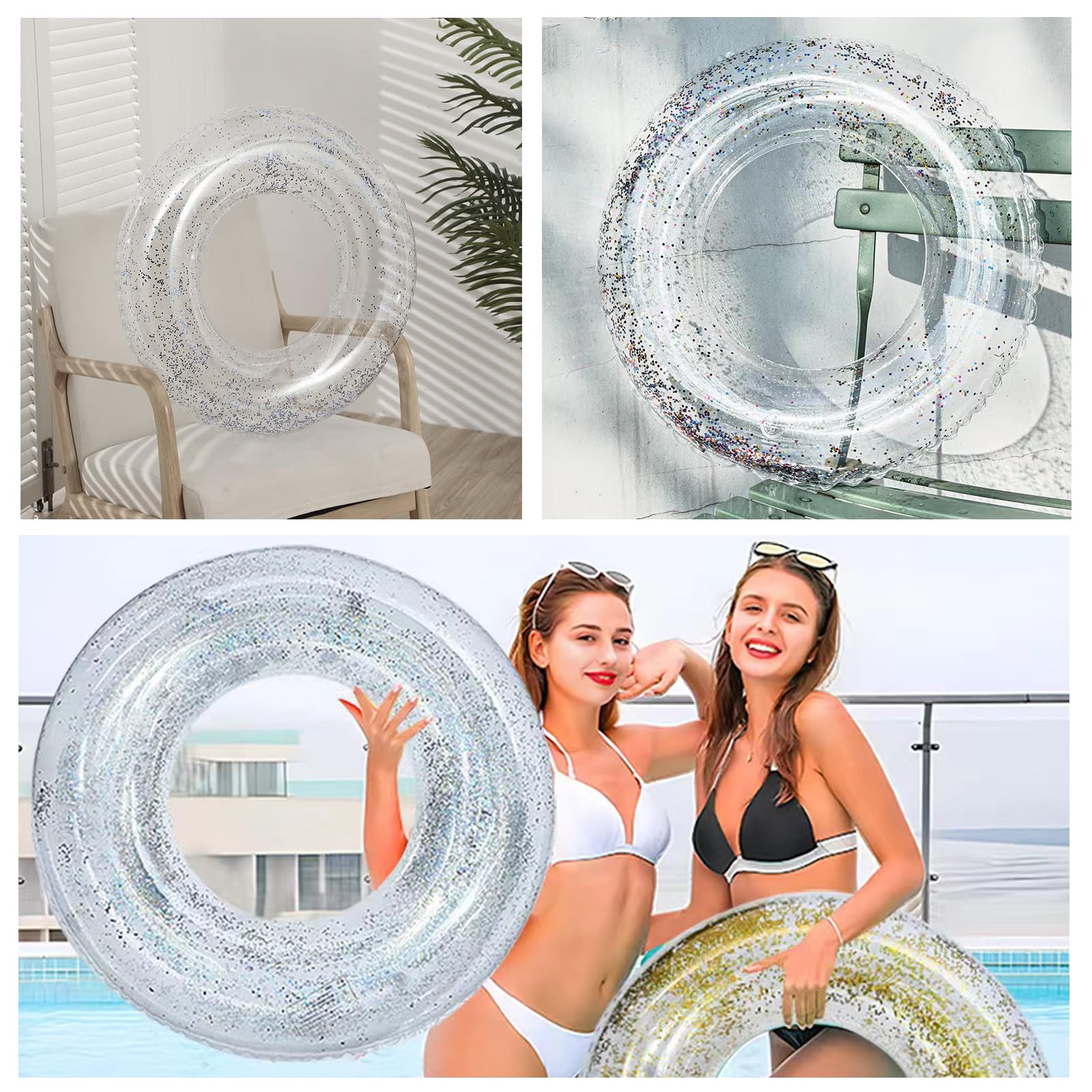Herz Glitzer Schwimmring 90cm - Aufblasbarer Poolring Für Erwachsene & Kinder