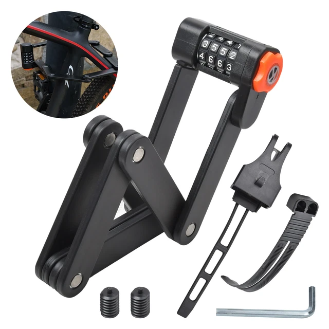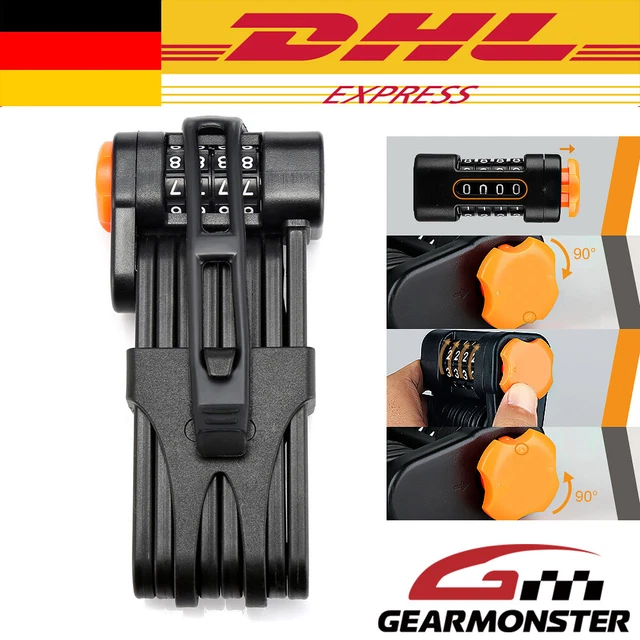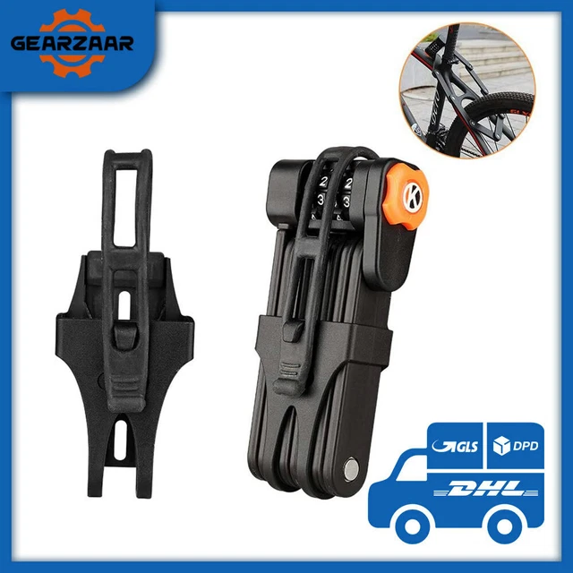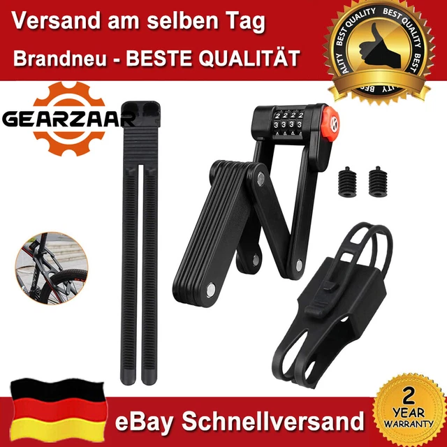 Dein Bike verdient den besten Schutz! Dieses Faltschloss aus gehärtetem Stahl (7 mm stark) ist richtig tough gegen Diebe. 90 cm lang wenn entfaltet, nur 1,2 kg schwer. Mit 4-stelligem Zahlencode - kein Schlüssel verlieren! Code ist änderbar. Inklusive Halterung für einfache Montage am Rahmen. Gefaltet super kompakt (6,8x22x3,5 cm), passt in jeden Rucksack. Auch perfekt für E-Bikes, Scooter und Roller. Einfach einstellen und beruhigt abstellen!