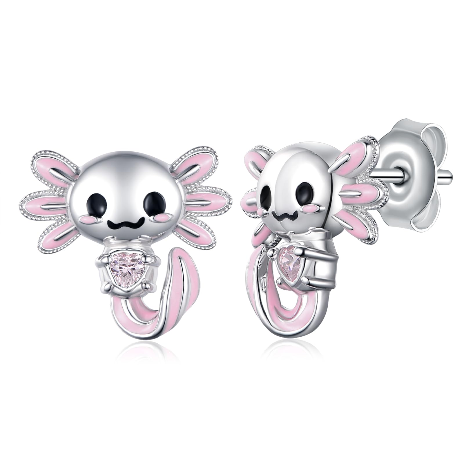 Axolotl Steckohrringe Aus 925 Sterling Silber - Niedlicher Herz-Anhänger Mit Zirkonia