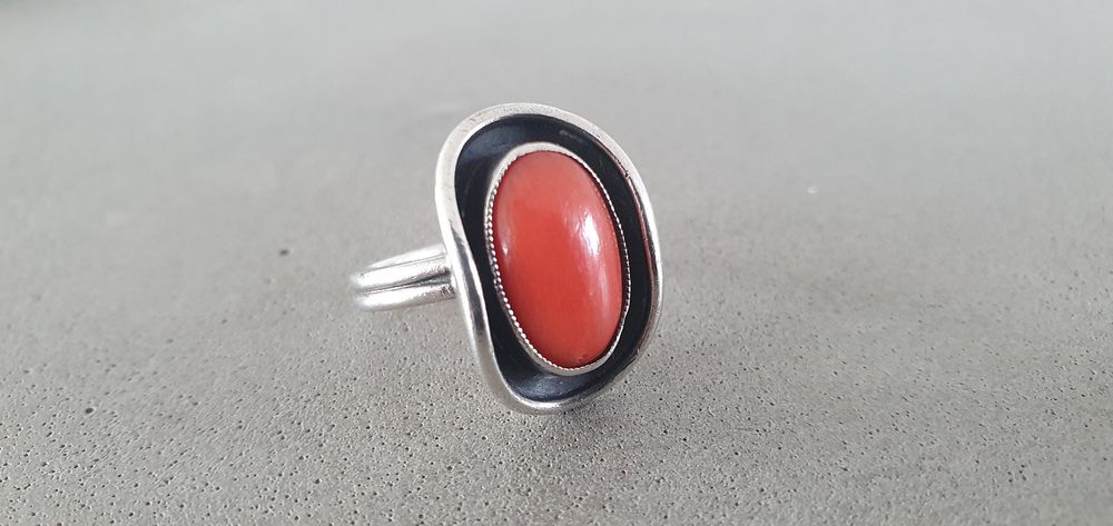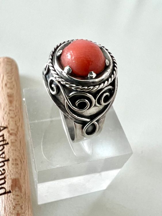 Damenring Aus 925er Silber Mit Roter Koralle - Verstellbar & Vintage