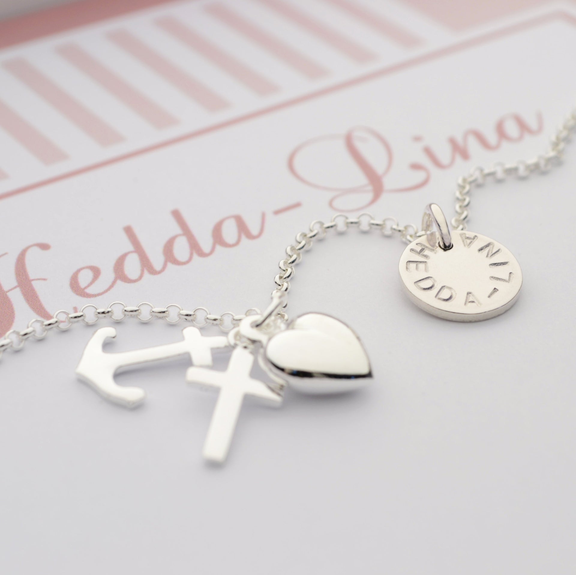 Xaana Taufkette 925er Sterlingsilber - Mit Herzchen & Rosa Zirkonia