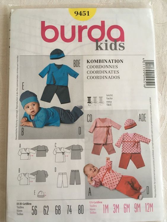 Hey du kreative Näherin! Mit diesem Burda Schnittmuster 9752 kannst du süße Babykleidung ganz einfach selbst nähen. In den Größen 56-80 sind enthalten: niedlicher Strampler, gemütliches Shirt, praktische Hose und kuscheliges Babyjäckchen. Der Schwierigkeitsgrad ist leicht - also perfekt für Nähanfänger oder wenn's mal schnell gehen soll. Burda empfiehlt Baumwollstoffe oder Strickstoffe für das Jäckchen. Das Schnittmuster kommt als Papierschnitt - Stoff und Material musst du separat besorgen. Tipp: Schau vor dem Kauf unbedingt in die Maßtabellen, damit du die richtige Größe erwischst. So kannst du individuelle Babykleidung nähen, die genau passt und total persönlich ist. Ob als Geschenk für werdende Eltern oder für den eigenen Nachwuchs - selbstgemachte Babykleidung kommt immer gut an! Mit Burda hast du übrigens einen zuverlässigen Partner an deiner Seite, bekannt für gute Passform und verständliche Anleitungen.
