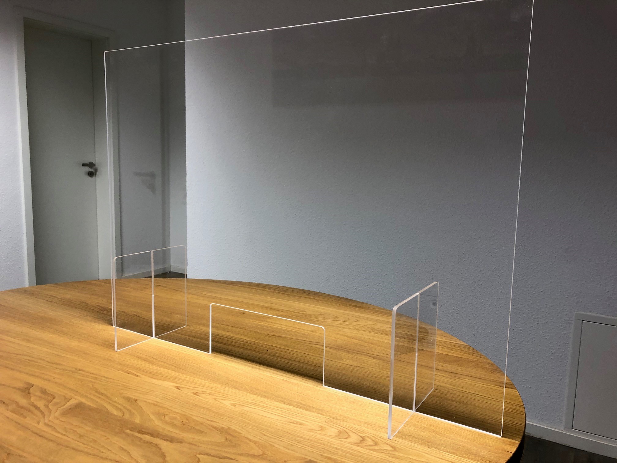 Das 4mm starke Acrylglas ist nicht nur stabil, sondern auch komplett wetterfest und UV-beständig - kann also auch mal im Außenbereich eingesetzt werden. Die mitgelieferten Aluminium-Standfüße sind super praktisch: Einfach eindrehen und schon steht der Schutz sicher und stabil. Der Auf- und Abbau dauert nur Sekunden, was die Reinigung super einfach macht. Made in Germany - da weiß man was man hat! Die Qualität ist absolut top und das Acrylglas ist leicht zu reinigen. Einfach aufstellen und für mehr Sicherheit und Hygiene sorgen - ob im Laden, Café oder Büro!
