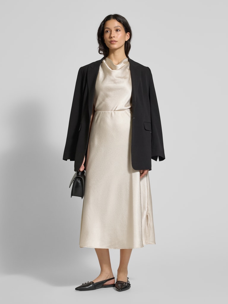 Suchst du einen Rock, der zu allem passt? Dieser A-Linie Midirock von Someday ist dein neuer Liebling! Mit ca. 81cm Länge (Größe 36) sitzt er perfekt knapp über dem Knie - total modern und elegant. Der elastische Bund gibt angenehm nach und drückt nicht - super für langen Tragekomfort! Kombiniere ihn mit einer lässigen Bluse fürs Office oder einem engen Top für den Abend - dieser Rock ist ein echter Allrounder. Aus technischer Doubleface-Qualität fällt er schön weich und liegt nicht starr am Körper. Das Model auf dem Bild ist 177cm - als Orientierung für die Länge. Perfekt für Meetings, Dinner-Dates oder einfach für den täglichen Style. Minimalistisch, aber mit Wow-Effekt - so muss Mode sein!