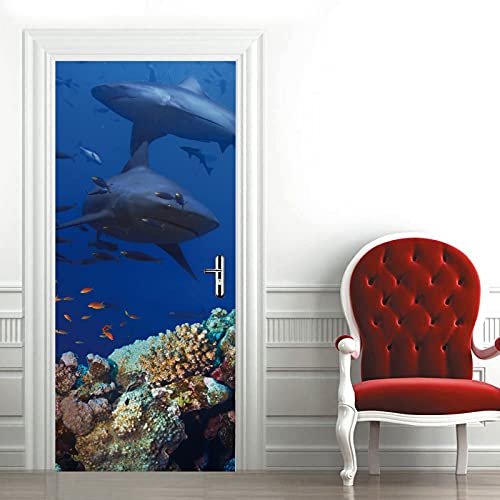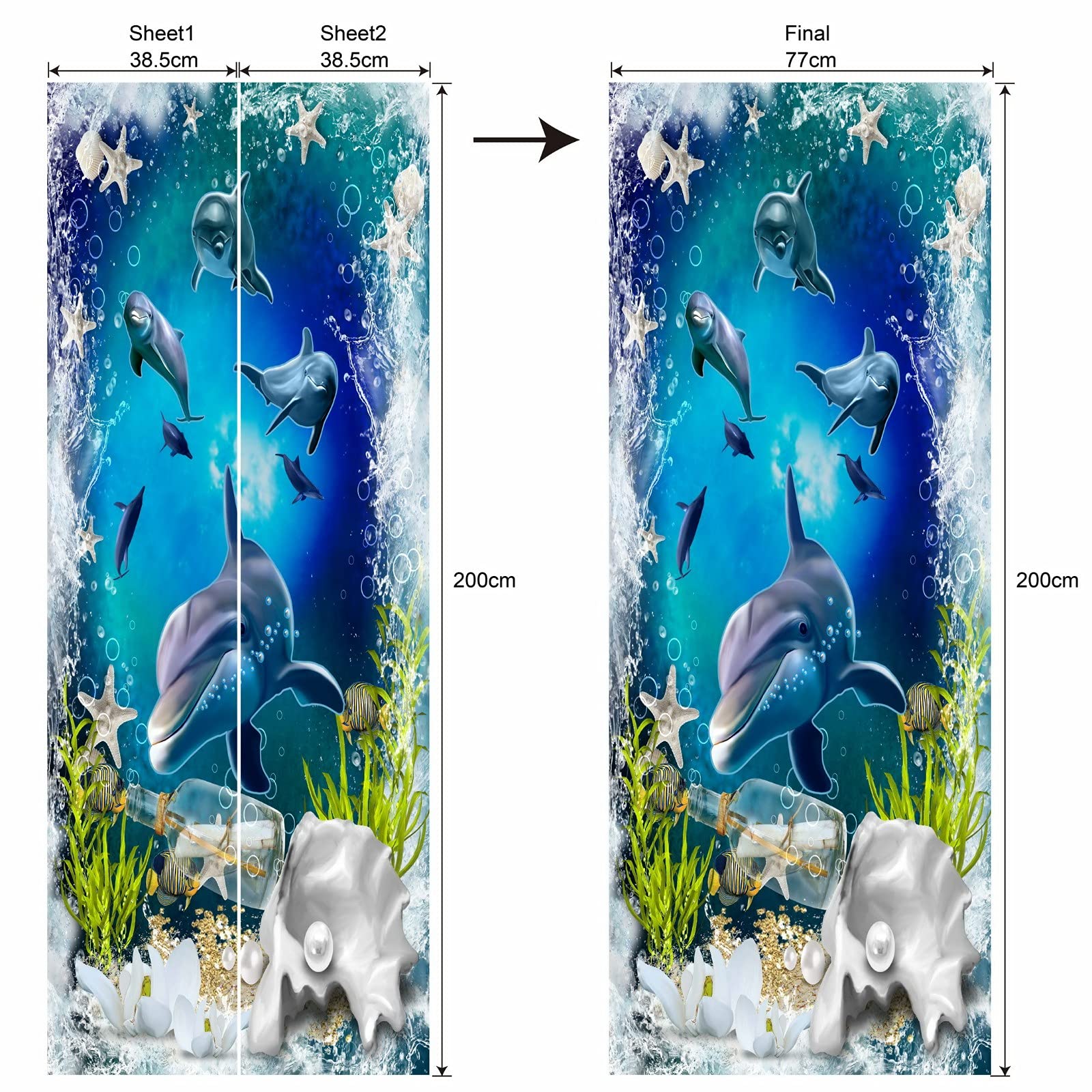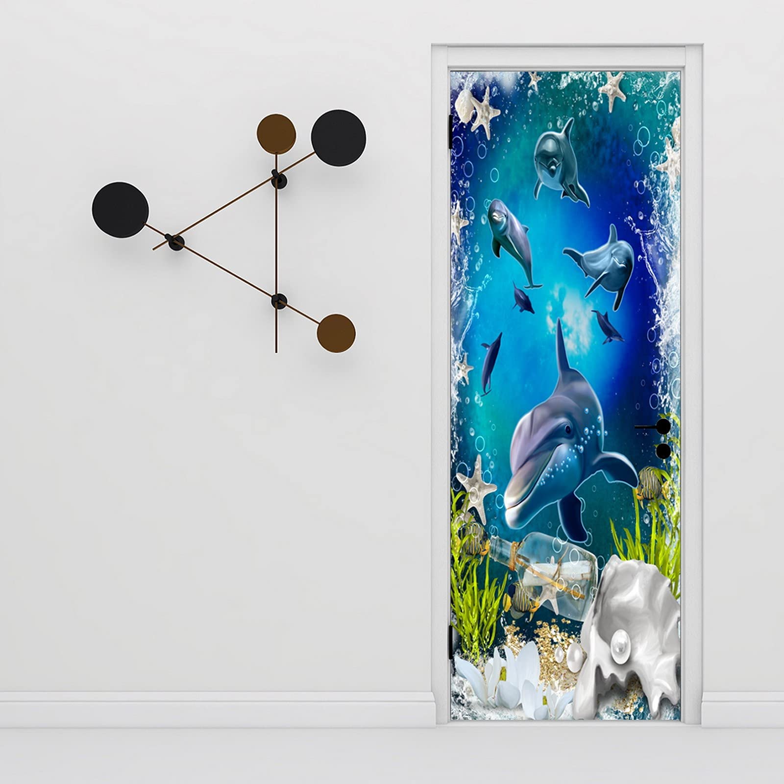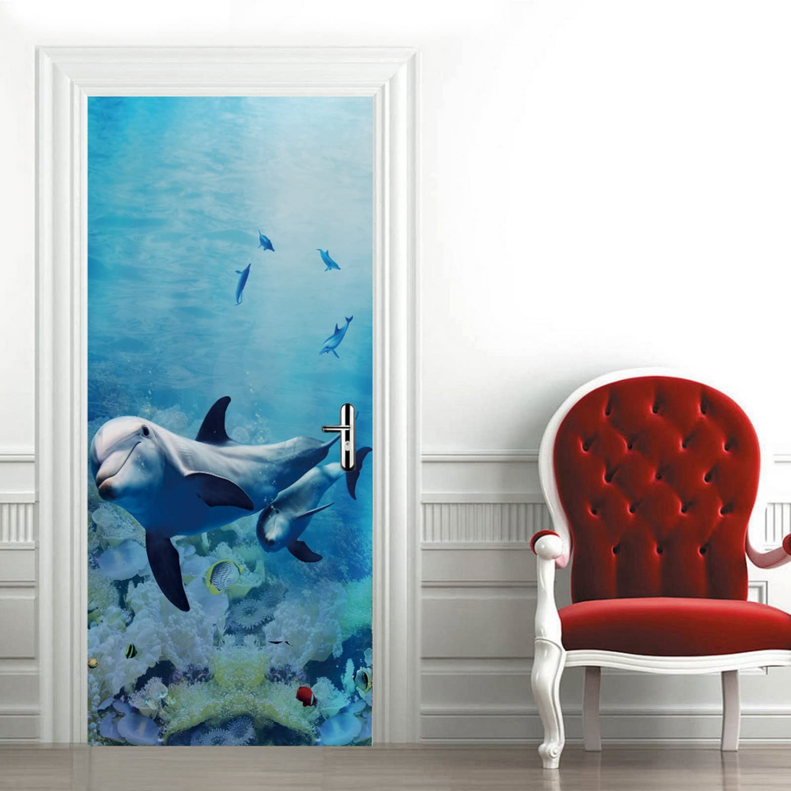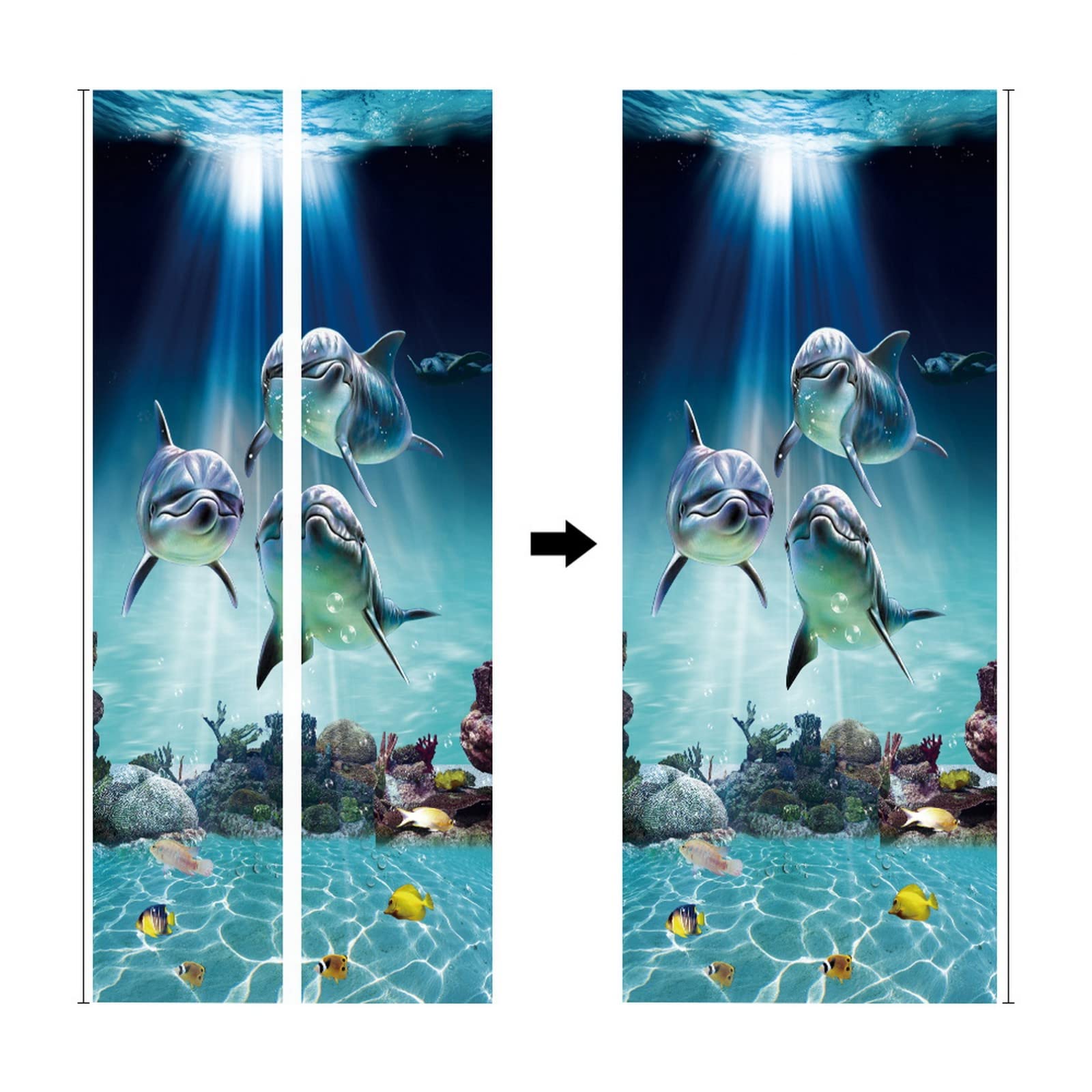 A.Monamour Türtapete Unterwasserwelt - 3D Delfine & Fische Selbstklebend 77x200cm