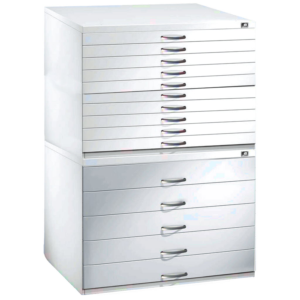 Planschrank 10 Schubladen DIN A0 - Grafikschrank 102x140x95cm Lichtgrau