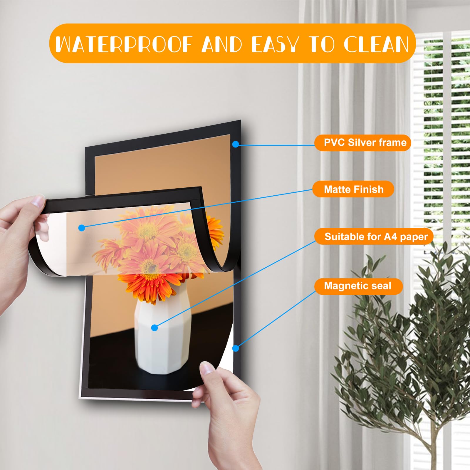 Boah, diese Magnetrahmen sind ja mega praktisch! Stell dir vor: Fünf A4-Rahmen, mit denen du deine Diamant Paintings, Fotos, Poster oder wichtige Informationen super einfach präsentieren kannst. Die Rahmen haben starke Magnete auf der Rückseite, die deine Dokumente sicher halten - nichts fällt mehr runter! Die transparente PVC-Front schützt deine Kunstwerke vor Staub, Fingerabdrücken und Feuchtigkeit. Das Beste: Die Rahmen sind selbstklebend! Einfach das Trägerpapier abziehen und auf einer glatten Oberfläche anbringen - an Fenstern, Schränken, Türen oder Kühlschränken. Ohne Werkzeug, ohne Bohren, ohne Kleber! Mit den Maßen 32,5x23,8 cm passen genau A4-Dokumente rein. Perfekt für zu Hause, aber auch für Geschäfte, Restaurants oder Büros. Du kannst damit Öffnungszeiten ankündigen, Speisekarten präsentieren oder einfach deine schönsten Fotos zeigen. Die Rahmen sind wasserdicht und können sogar draußen verwendet werden! Ob im Wohnzimmer, Schlafzimmer, Büro oder im Schaufenster - diese Rahmen sind überall einsetzbar. Einfach Dokument reinlegen, zuklappen und aufhängen - simpler geht's nicht! So werden deine Kunstwerke und wichtigen Informationen immer perfekt präsentiert.