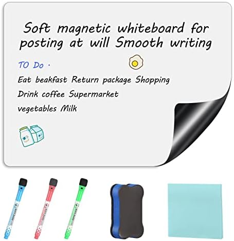 Wow, diese Whiteboard-Folien sind ja mal total praktisch! Du kriegst gleich 3 Stück im A4-Format (30x21cm) - magnetisch und abwischbar. Perfekt für den Kühlschrank, Aktenschrank oder andere Metallflächen. Aus hochwertigem PET-Material - glatte Oberfläche, schreibt sich super und lässt sich easy wieder abwischen. Komplett-Set mit 8 magnetischen Whiteboard-Stiften in verschiedenen Farben, 2 magnetischen Radiergummis und 6 bunten Kühlschrankmagneten! Die Folie haftet super fest, fällt nicht runter und nutzt sich nicht ab. Ideal für Einkaufslisten, Termine, Notizen oder kreative Kritzeleien. Einfach beschreiben, abwischen, neu beschreiben - unendlich oft! Besonders praktisch in der Küche für Wochenpläne oder im Büro für Aufgaben. Die Stifte und Radiergummis haften auch magnetisch, gehen also nicht verloren. Einfach aufkleben und sofort loslegen - keine komplizierte Montage nötig! Macht Organisation richtig einfach und sieht dabei noch gut aus.