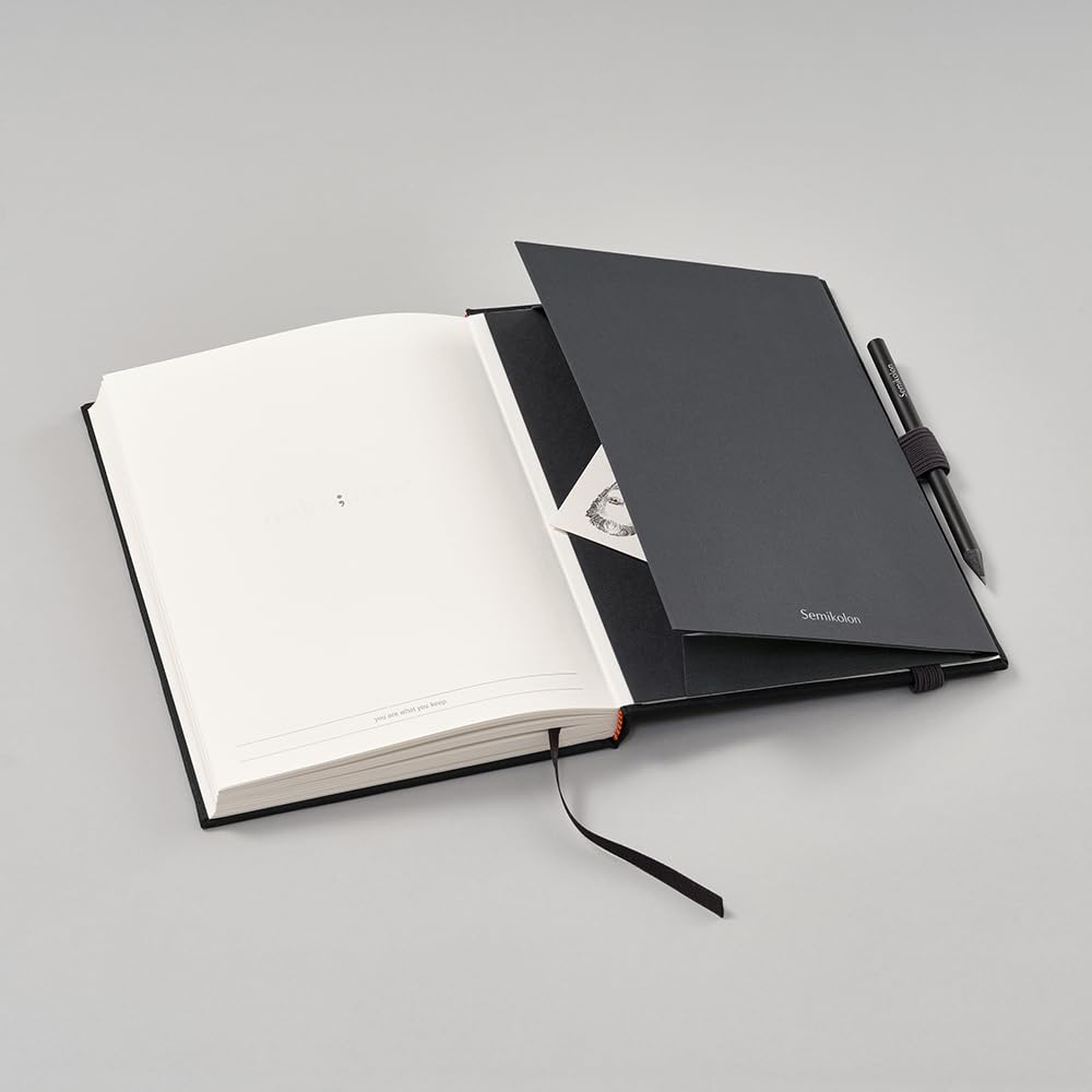 Ordnung für dein Notizbuch! Diese praktische Falttasche von Semikolon klebst du einfach in dein A5-Buch und hast sofort extra Stauraum. Mit Gummiverschluss für sicheren Halt und Stiftschlaufe für deinen Lieblingsstift. Perfekt für Zettel, Belege, Fotos oder wichtige Notizen. In schickem Lava Stone Design - sieht super edel aus! Selbstklebend und einfach zu montieren. Aus hochwertigem Papier und Buchleinen - made in Hamburg. Umweltfreundlich produziert mit natürlichen Materialien. Mach dein Notizbuch individuell und organisiert!