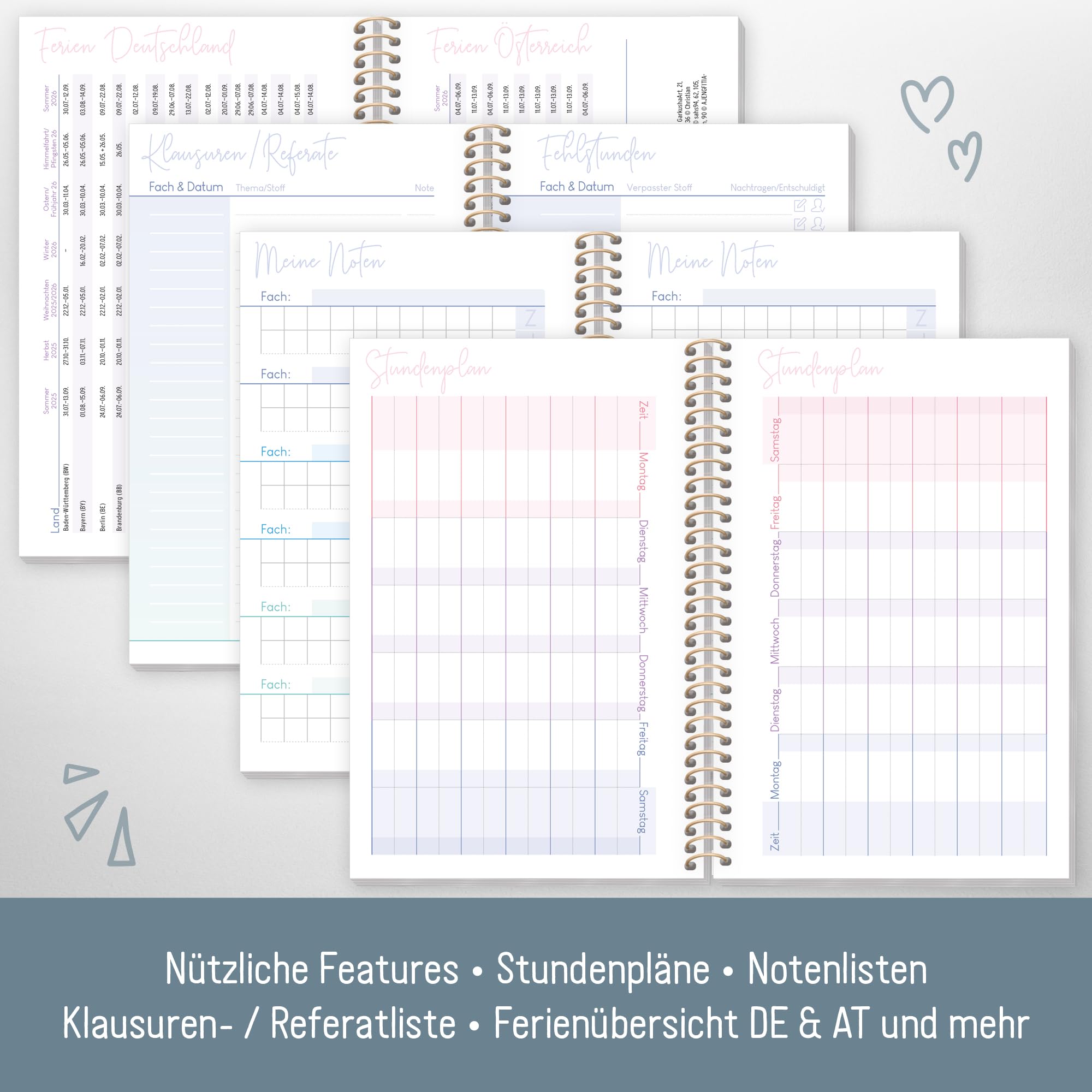Nie wieder den Überblick in der Schule verlieren! Der Schulstuff Timer ist dein bester Freund fürs Schuljahr 2025/2026 - von August 25 bis Juli 26 passt alles rein. Das coole Mini-Format (11x15cm) passt in jede Tasche und hat trotzdem Platz für alle Hausaufgaben, Termine und Notizen. Auf jeder Doppelseite siehst du gleich die ganze Woche auf einen Blick. Besonders praktisch: Notenlisten, Ferienübersicht für Deutschland und Österreich, und extra Seiten für wichtige Lehrer und Sprechstunden. Das Papier ist richtig hochwertig (90g/m²), FSC-zertifiziert und klimafreundlich bedruckt. Mit dem Lesebändchen findest du blitzschnell deine aktuelle Seite. Das Cover in Grey Marble Optik mit UV-Lack sieht nicht nur stylisch aus, sondern ist auch robust. Ob für Grundschule oder Oberstufe - mit diesem Organizer startest du perfekt durchs Schuljahr! Und das Beste: Es gibt ihn in verschiedenen coolen Designs - einfach nach 'Schulstuff Schülertimer' suchen.