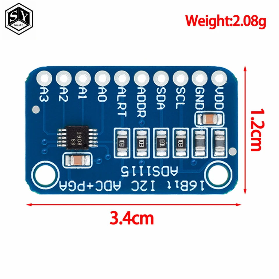 2x ADS1115 ADC Module 16Bit I2C 4-Kanal Mit Verstärker Für Arduino Raspberry Pi