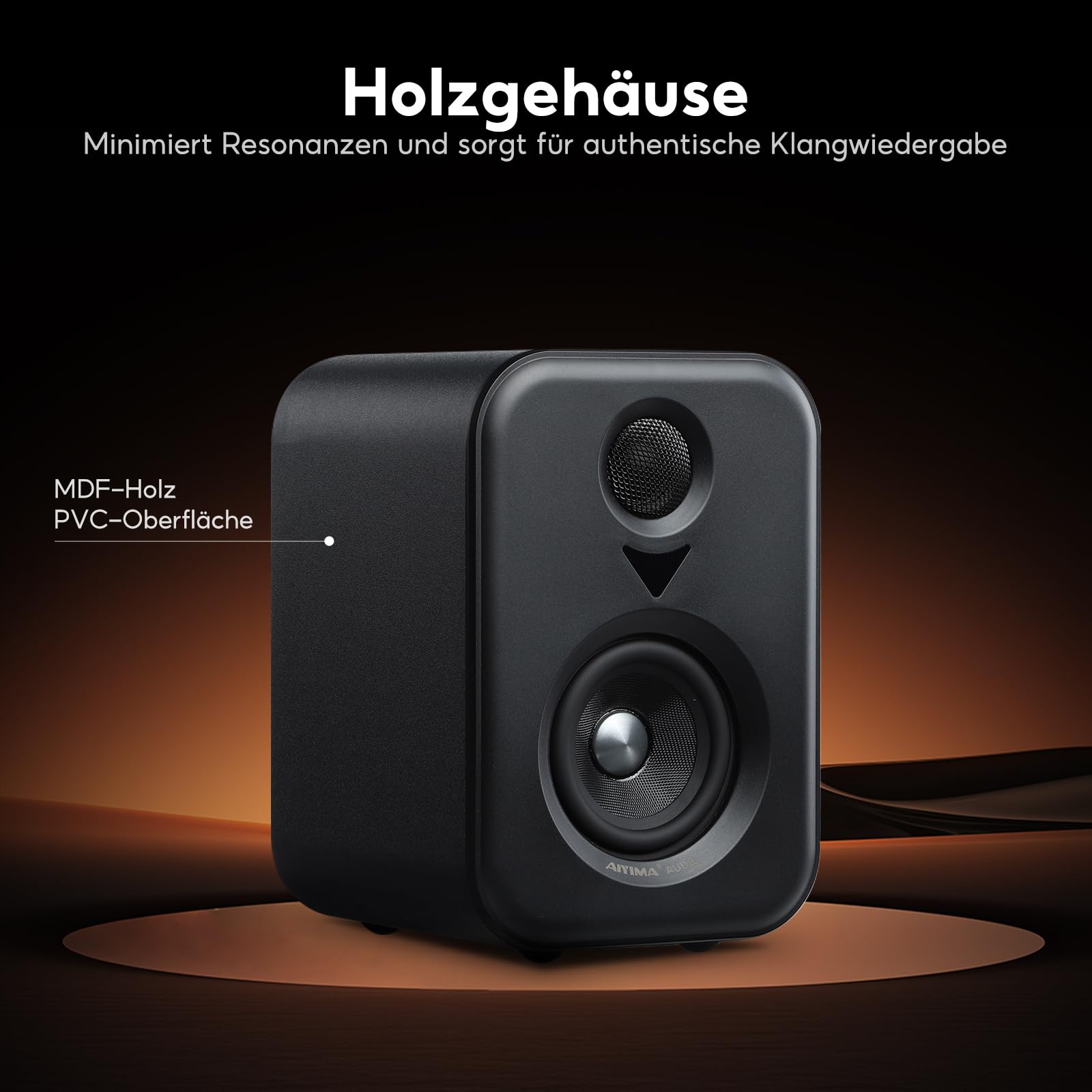 AIYIMA S400 Aktiv Lautsprecher 2.1 - 80W Bluetooth 5.3 Regallautsprecher | Mit Optisch, USB, RCA Anschlüssen