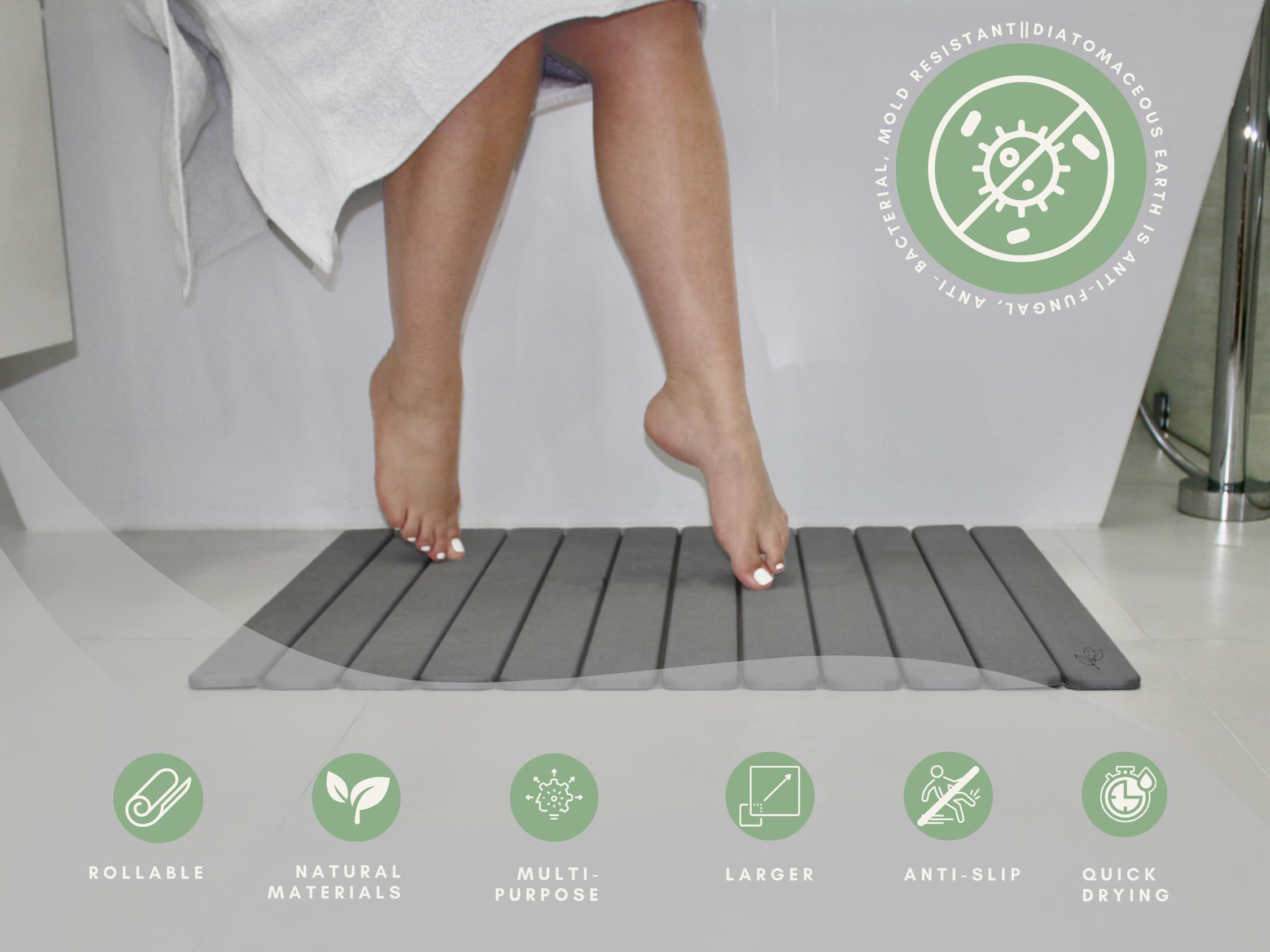 Endlich keine nassen Füße mehr! Diese Badematte aus Diatomit-Stein saugt Wasser in Sekunden auf und trocknet super schnell. Rutschfest, antibakteriell und schimmelfrei. Perfekt für Bad, Dusche, Küche oder Flur. Natürliches Material, ohne Chemie. Einfach mit feuchtem Tuch reinigen. Sieht modern aus und ist super hygienisch. Schützt deine Böden vor Feuchtigkeit. Leicht aufrollbar für platzsparende Aufbewahrung. Deine Füße bleiben trocken und sicher!