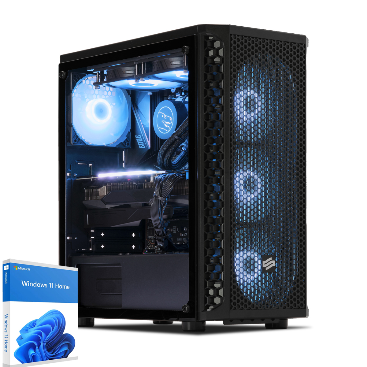 Boah, dieser Gaming PC ist ja mal der absolute Hammer! Mit AMD Ryzen 7 9700X Prozessor und NVIDIA RTX 5060 Grafikkarte - da laufen alle aktuellen Spiele ultra-flüssig. 32GB RGB DDR5 RAM und 1000GB SSD - alles blitzschnell. Mit 360mm Wasserkühlung bleibt der Rechner auch bei langen Gaming-Sessions cool. 7x 120mm RGB-Lüfter sehen mega aus und du kannst die Beleuchtung einfach steuern. Windows 11 Pro ist schon vorinstalliert, also sofort loszocken! Das Gehäuse mit Panzerglas zeigt die ganze Hardware perfekt. Dazu 3 Jahre Vor-Ort-Service - richtig gutes Paket. Für alle, die das Beste vom Besten wollen!