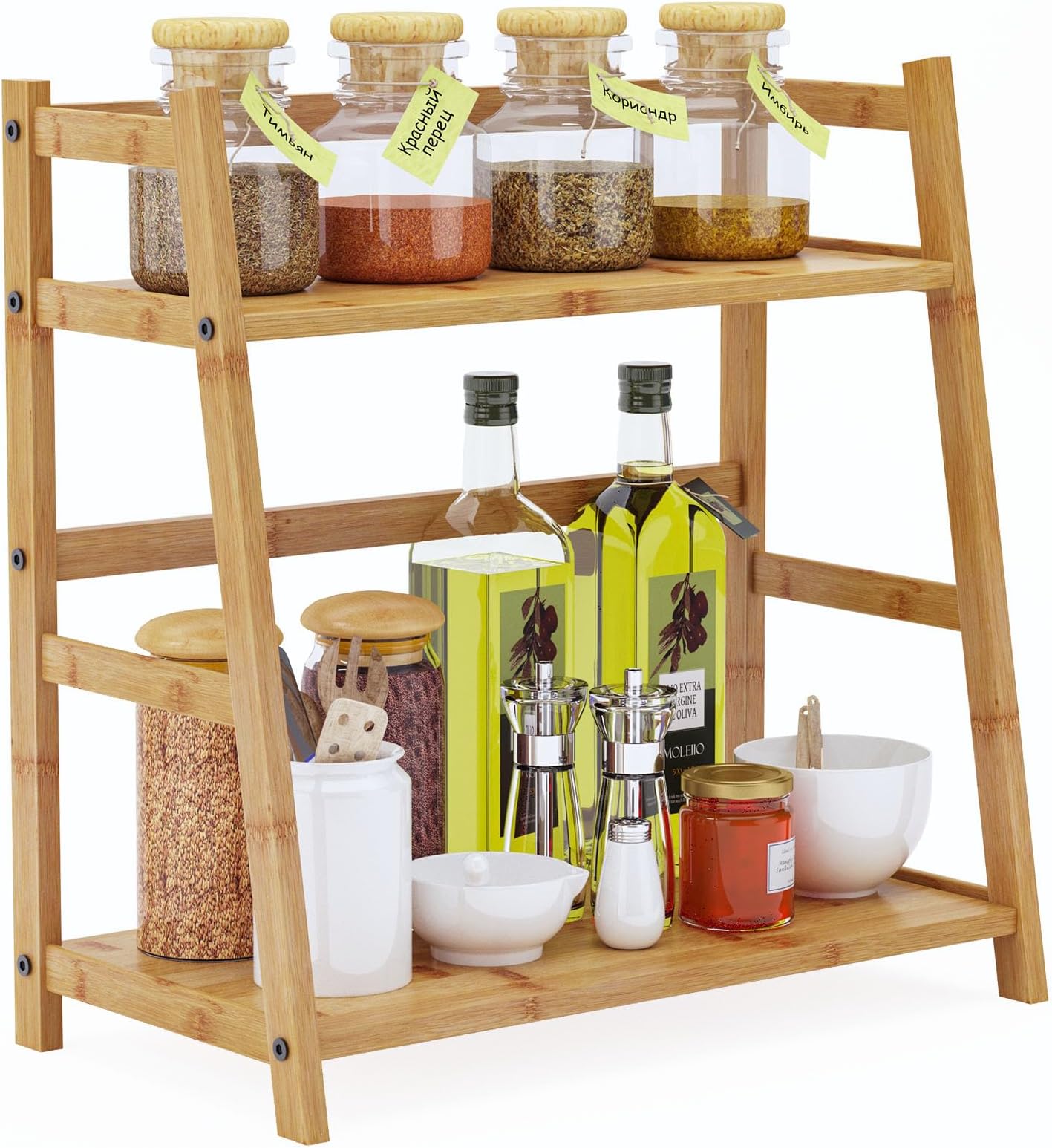 AMIG Gewürzregal Aus Stahl & Bambus - Praktisches Küchenregal