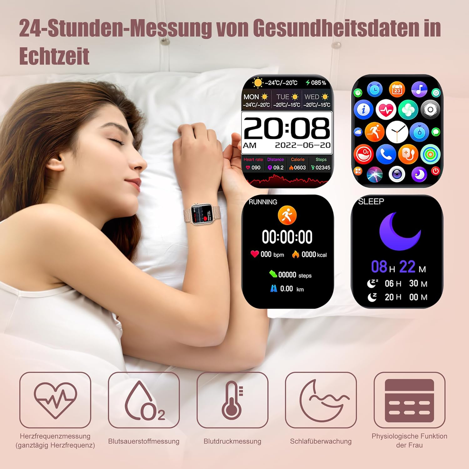 Stylische Smartwatch mit krassen Features! Das 1,39 Zoll AMOLED Display ist super scharf und zeigt über 180 Zifferblätter. Misst deine Herzfrequenz, Blutsauerstoff und hat 123 Sportmodi - von Laufen bis Basketball. Du kannst sogar direkt von der Uhr telefonieren! IP67 wasserdicht, 250mAh Akku für lange Laufzeit. Kompatibel mit Android und iOS. Sieht nicht nur gut aus, sondern hält auch was aus - getestet nach militärischen Standards. Perfekt für Sport, Alltag oder als Business-Uhr.