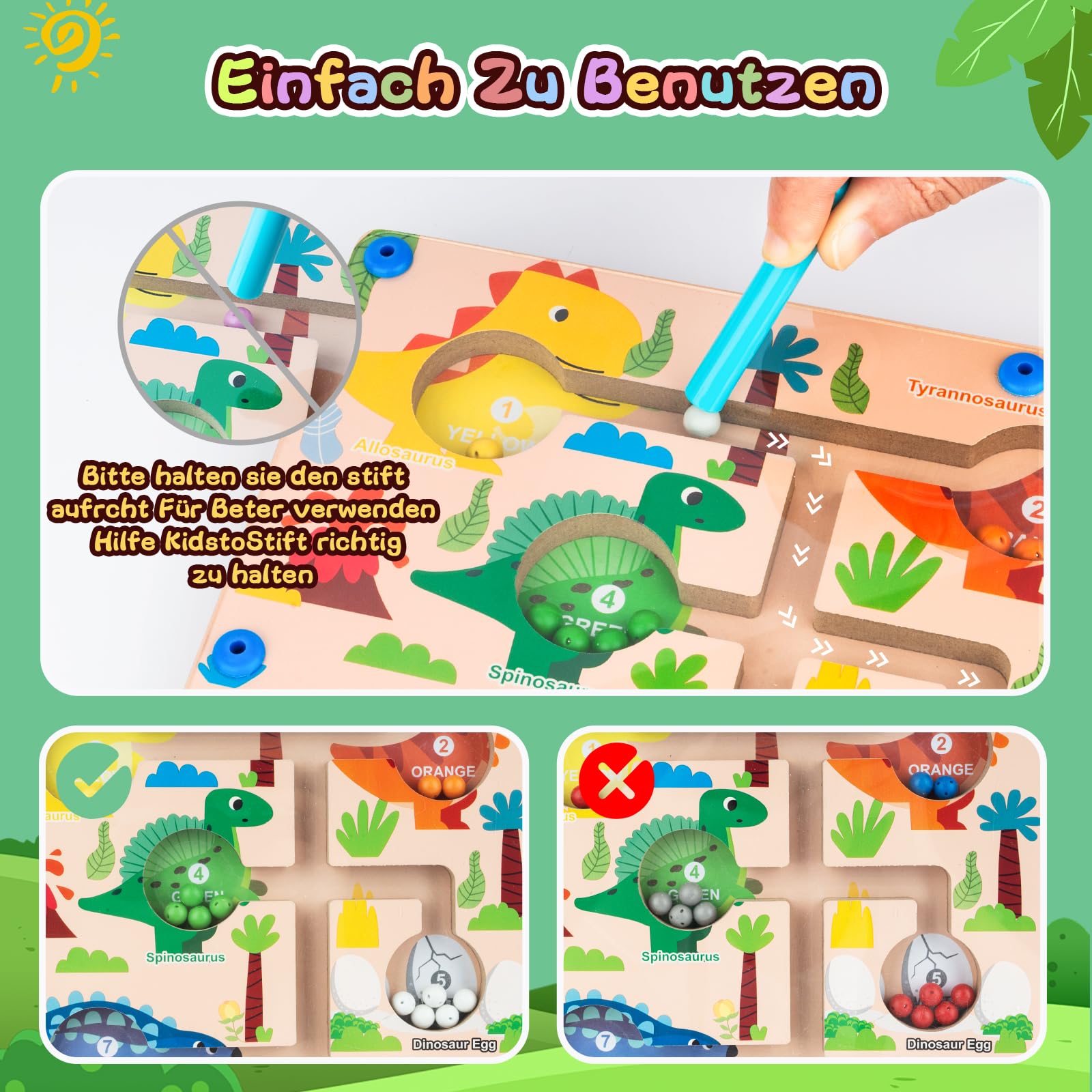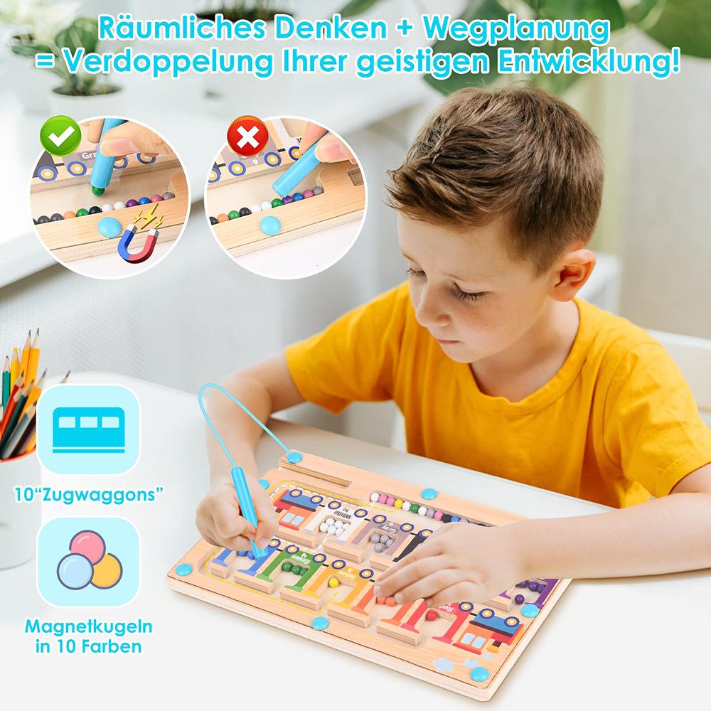 AMSINK Magnetspiel Für Kinder Ab 2 Jahre - Dino Labyrinth Mit Zahlen & Farben Zum Feinmotorik Training
