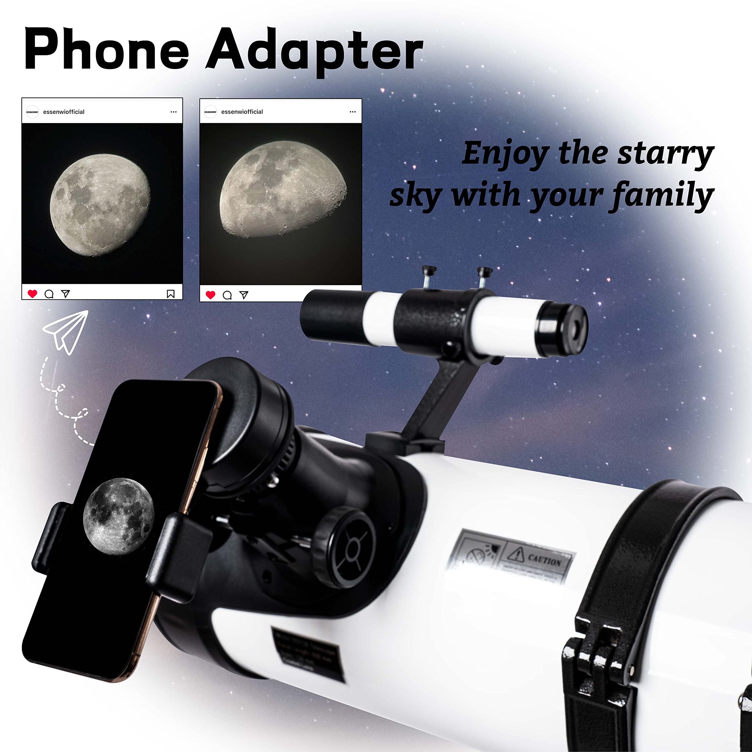 Entdecke das Universum! Dieses 130mm Newton-Reflektor Teleskop ist perfekt für Erwachsene und Astronomie-Einsteiger. Die große 130mm Öffnung sammelt mehr Licht und ermöglicht beeindruckende Blicke in den Nachthimmel. Mit EQ5 Montierung für präzise Nachführung. Im Lieferumfang: 2 Plossl Okulare (10mm & 25mm), 2x Barlow-Linse für bis zu 130-fache Vergrößerung. Plus Smartphone-Adapter und drahtlose Fernbedienung für Astrofotografie. Der Kohlefaser-Tubus ist leicht und dennoch stabil. Das verstellbare Stahl-Stativ (74-113cm) bietet festen Stand. Mit Rotpunkt-Sucher für einfaches Zielen. Perfekt für Mond, Planeten und Deep-Sky Objekte. Ein komplettes Set für den Einstieg in die Astronomie - einfach aufbauen und die Wunder des Weltalls erkunden!