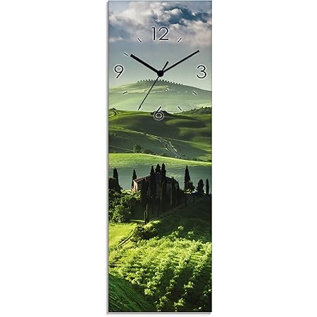 Diese wunderschöne Kaffee-Uhr von ARTLAND bringt italienisches Flair in deine vier Wände! Mit den Maßen 20x60 cm im Hochformat ist sie perfekt für schmale Wände in Flur, Küche oder Wohnzimmer. Das besondere Kaffee-Design mit Italien-Motiven ist ein echter Hingucker für alle Kaffeeliebhaber. Die Uhr arbeitet absolut lautlos - keine nervigen Tickgeräusche mehr! Das Funkwerk stellt sich automatisch auf die genaue Zeit ein und korrigiert sich sogar selbständig bei Zeitumstellung. Hergestellt in Deutschland aus 4 mm starkem Weißglas, ist die Uhr kratzfest und pflegeleicht. Der hochauflösende Digitaldruck ist UV-beständig und geruchlos - die Farben bleiben also lange frisch. Perfekt auch für Feuchträume wie das Badezimmer geeignet. Die Uhr wird mit vormontiertem Aufhänger geliefert - einfach auspacken und aufhängen! Batterie (1x AA) ist nicht im Lieferumfang enthalten. Bei Problemen mit dem Funkempfang lässt sich die Uhr auch manuell einstellen. Mit 2 Jahren Herstellergarantie auf das Uhrwerk bist du auf der sicheren Seite. Ein Familienunternehmen mit über 50 Jahren Erfahrung steht für Qualität, auf die du dich verlassen kannst!