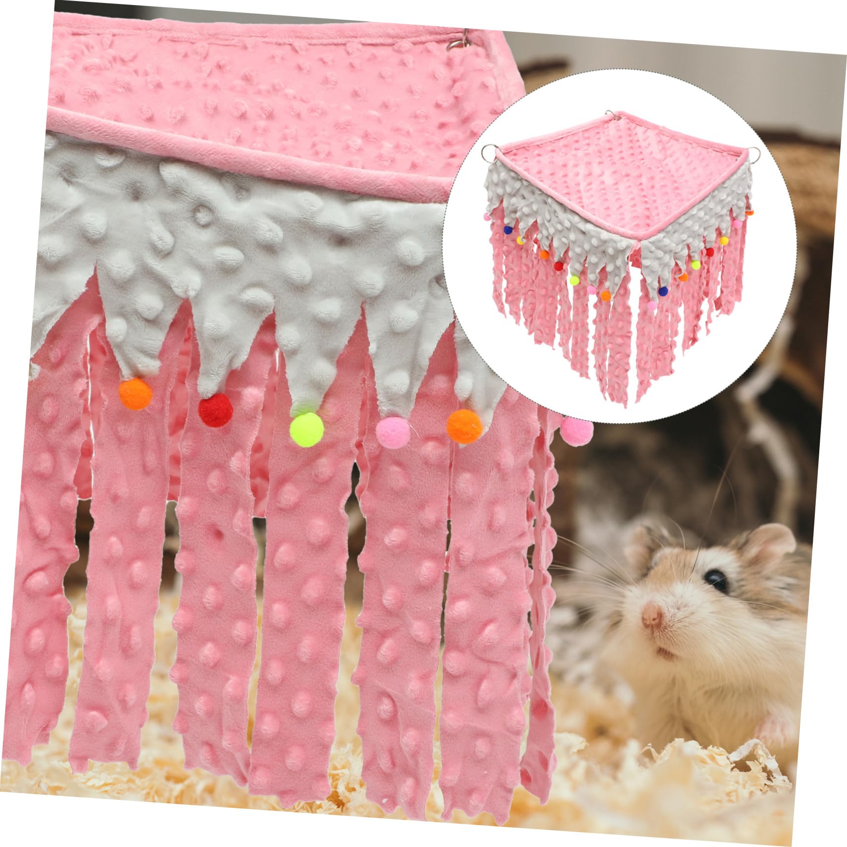 Gemütliche Rückzugsmöglichkeiten für deine kleinen Lieblinge! Diese beiden süßen Eck-Verstecke aus weicher Baumwolle bieten deinen Kleintieren einen perfekten Schlaf- und Ruheplatz. Mit den Maßen 33x29,5x27 cm passen sie ideal in jede Käfigecke. Das dekorative Fransen-Design sieht nicht nur hübsch aus, sondern lädt auch zum Kuscheln ein. Perfekt für Hamster, Meerschweinchen, Kaninchen, Chinchillas und andere Nager. Einfach in der Käfigecke zu befestigen - schon haben deine Tiere ihr eigenes gemütliches Reich. Die Hängematten-Funktion sorgt für Abwechslung und fördert das Klettervergnügen. Ein Muss für jede artgerechte Kleintierhaltung!