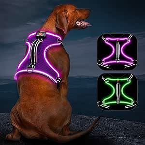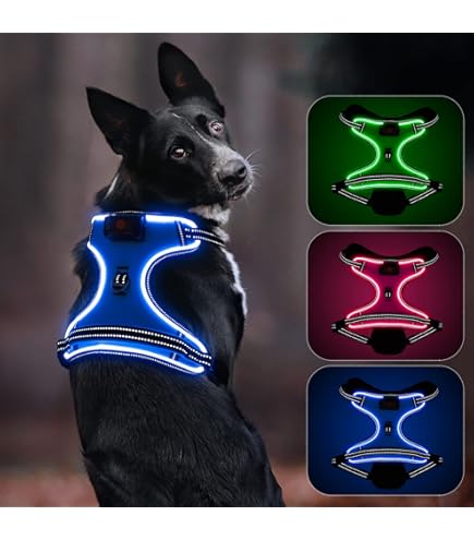 AUAUY LED Hundegeschirr - Aufladbares Leuchtgeschirr Mit Reflektoren Für Nachtspaziergänge