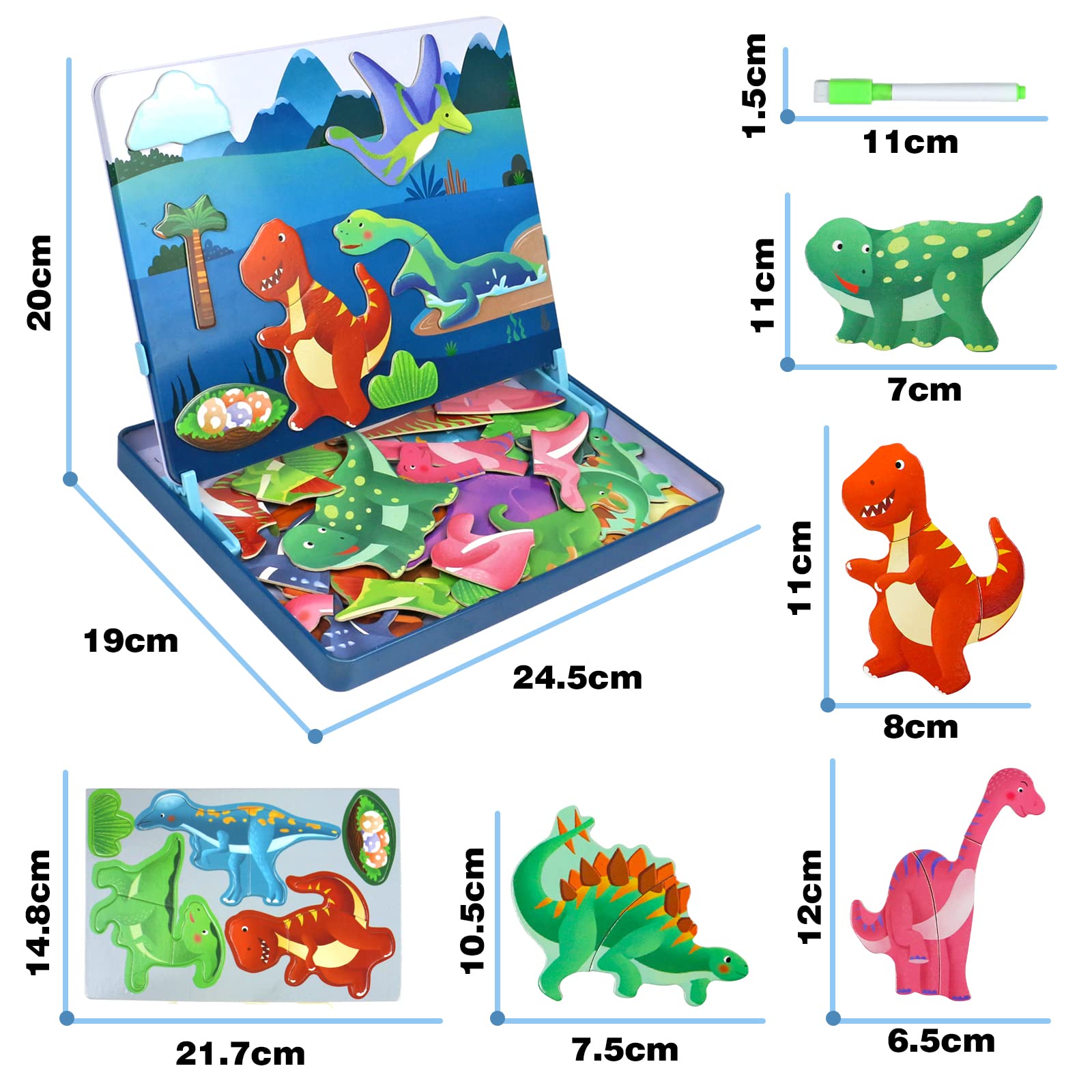 Hey, dieses Magnet-Puzzle ist perfekt für kleine Entdecker! Mit süßen Dinosaurier-Motiven und verschiedenen Schwierigkeitsstufen (12, 16 oder 20 Teile). Ideal für Kinder von 3-6 Jahren. Das Beste: Die Teile bleiben dank Magnetismus super an der Tafel haften - perfekt für unterwegs im Auto oder Flugzeug! Macht nicht nur Spaß, sondern fördert auch die Konzentration, Motorik und das logische Denken. Aus umweltfreundlichem Material mit Sojatinte und wasserfestem Überzug. So können die Kleinen richtig kreativ werden und lernen ganz nebenbei Farben und Formen. Viel besser als ständig am Handy zu hängen! Perfekt als Geburtstagsgeschenk oder für Weihnachten. Auch super für Eltern, die mal quality time mit ihren Kids verbringen wollen. Achtung: Enthält Kleinteile, also nichts für Kinder unter 3 Jahren!