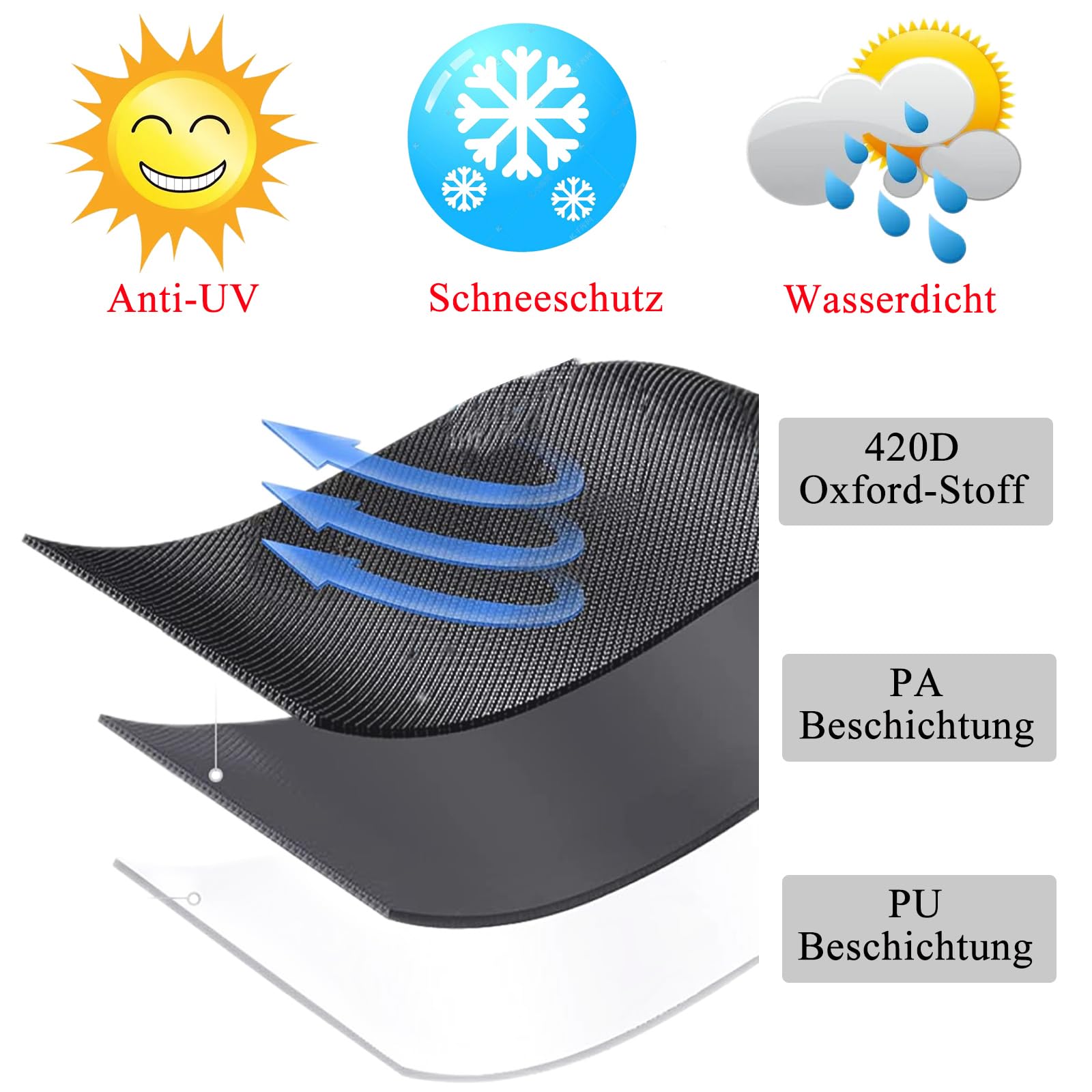 Diese eckige Whirlpool-Abdeckung schützt deinen Pool rundum! Aus strapazierfähigem 600D Oxford-Gewebe mit PU-Beschichtung - total wasserdicht, winddicht und mit UV-Schutz. In 220x220x85cm (und anderen Größen erhältlich). Der praktische Kordelzug untenrum und die Windbreaker-Druckknöpfe sorgen für bombenfesten Sitz, auch bei Sturm. Sorgfältig genähte Nähte verhindern Reißen, die wasserdichten Innennähte halten jeden Regen ab. Im Vergleich zu billigen PVC-Varianten bleibt diese Hülle flexibel und reißt nicht. Einmal drüber, festziehen - und dein Whirlpool bleibt sauber und geschützt. Ganzjahres-tauglich!