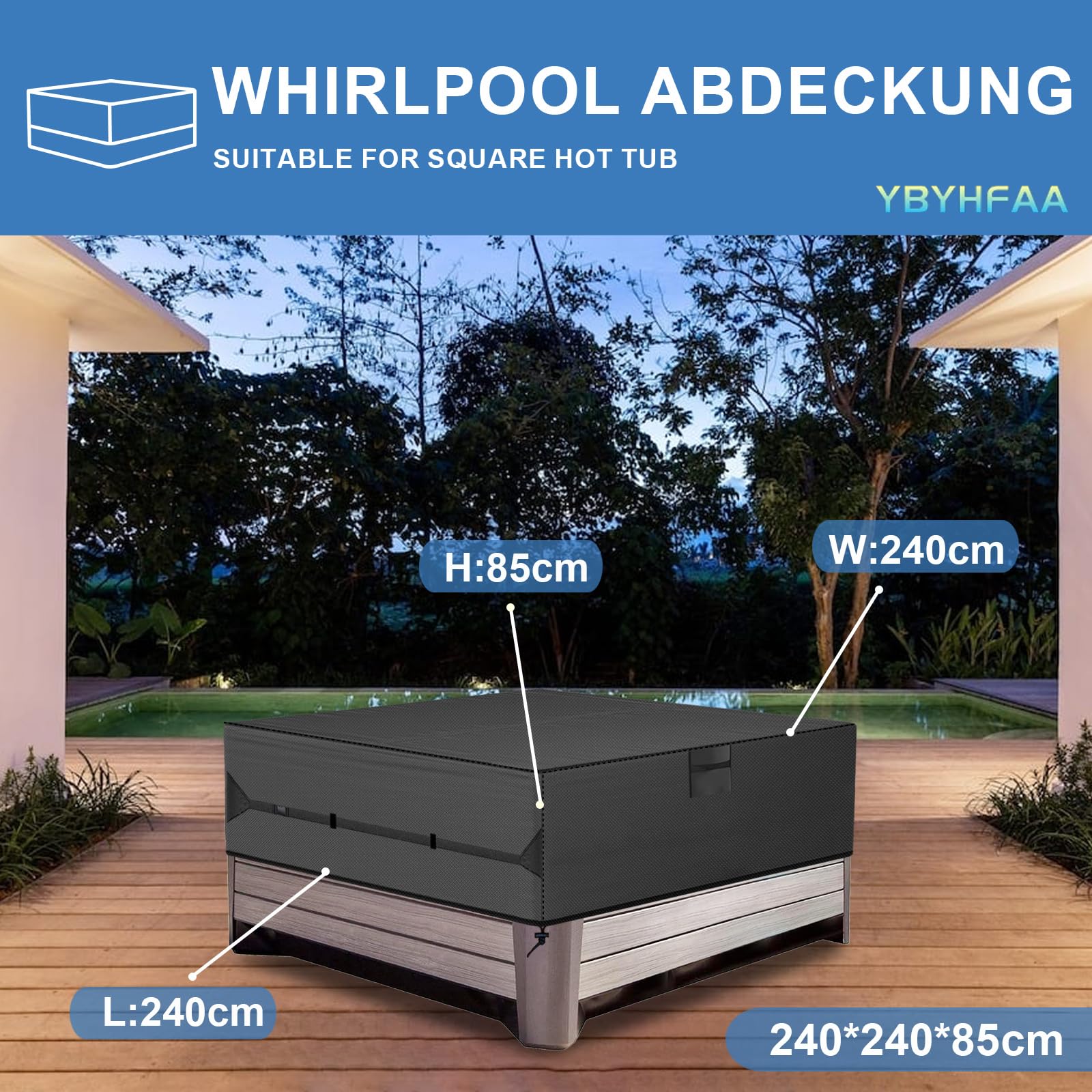 Whirlpool Abdeckung Eckig 220x220x85cm - Wasserdichte Schutzhülle Aus 600D Oxford