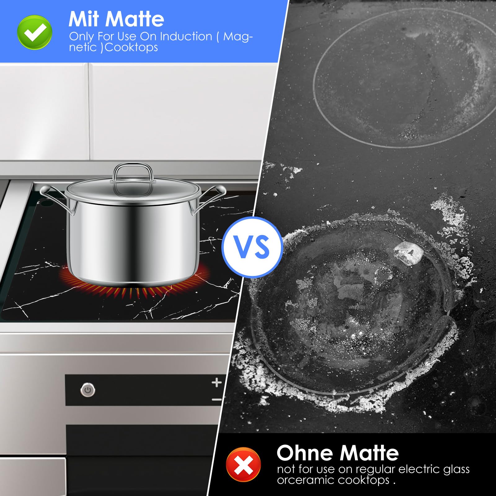 Schütze dein teures Induktionskochfeld mit dieser praktischen Silikonmatte! Maße: 54x90 cm, also passt sie auf die meisten Herde. Aus hitzebeständigem Silikon-Fiberglas das bis 450°F (232°C) aushält. Schützt vor Kratzern von Töpfen und verhindert lästige Ölflecken. Die rutschfeste Rückseite hält Mixer und Schneidebretter sicher fest. Kann auch als Mikrowellen- oder Backofenmatte verwendet werden. Einfach reinigen und immer wieder verwenden - praktischer geht's nicht!